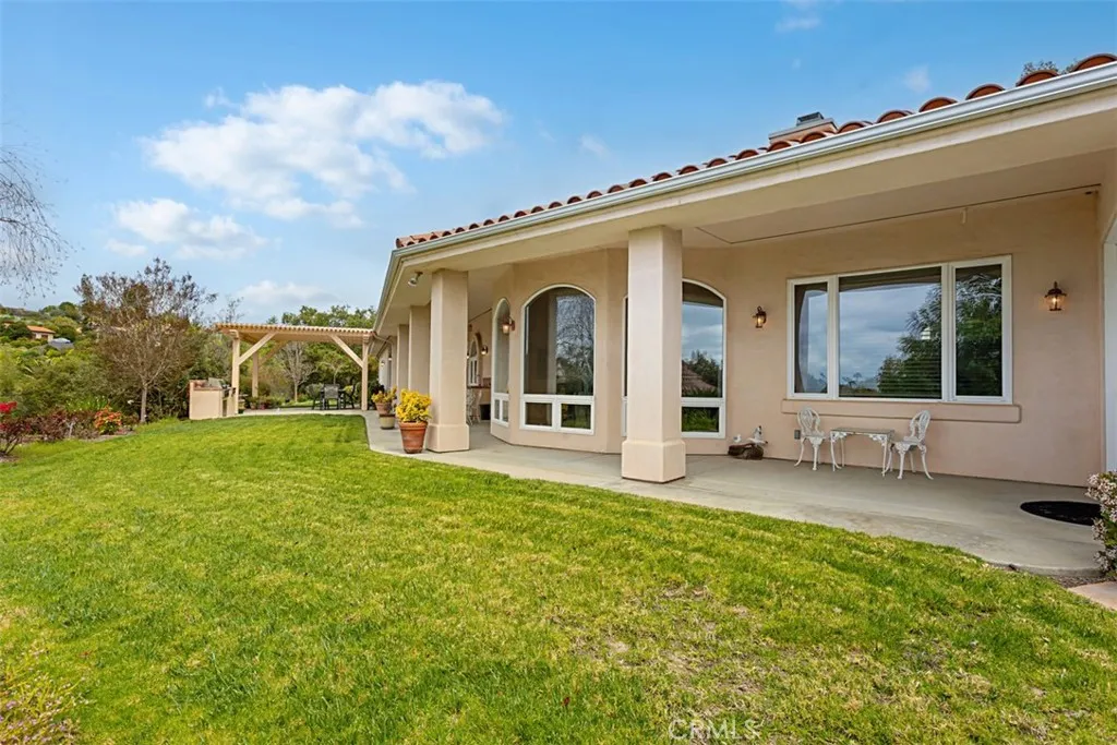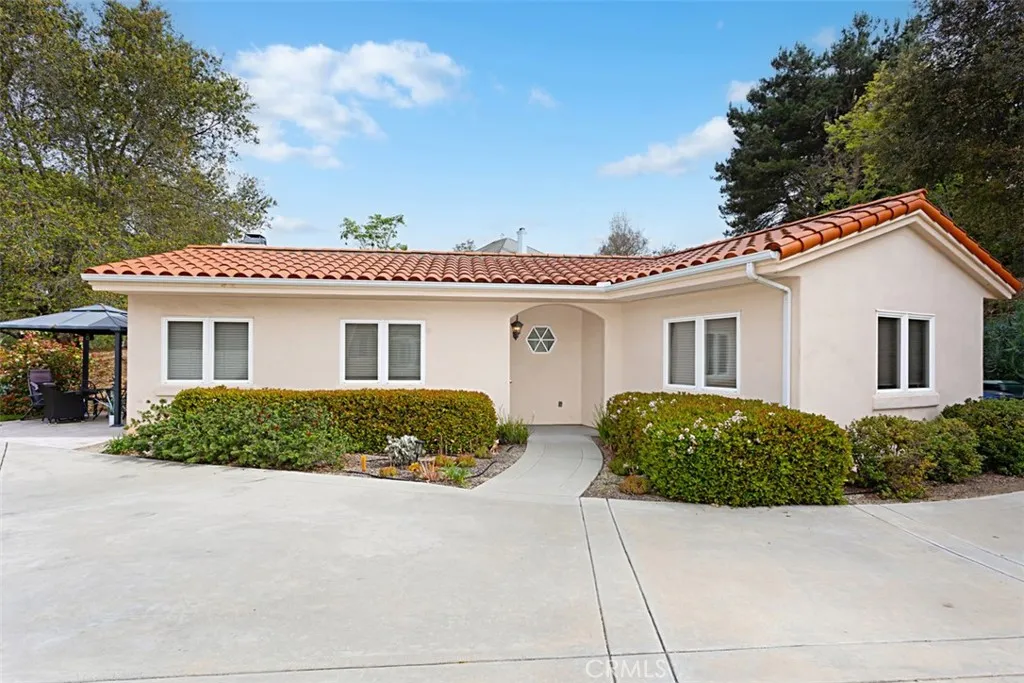 Elegant Tuscan Style Estate in Los Alisos Neighborhood of Fallbrook, CA Overview Nestled in the upscale Los Alisos neighborhood, this beautiful Tuscan-style custom-built home offers a luxurious and spacious living experience. The main residence spans approx. 2,928 square feet and features two bedrooms along with a large office or den that can easily be converted into a third bedroom. With 2.5 baths, the home is designed for both comfort and functionality. Detached Accessory Dwelling Unit (ADU) Complementing the main home is a detached ADU, measuring approx. 720 square feet. This unit includes a cozy fireplace in the main living area, one bedroom, one bath, an additional office or den, a full kitchen, and a private covered patioideal for guests or multi-generational living. Main Home Features Formal living room with fireplace Separate family room with fireplace and wet bar Central music center audible throughout the home Formal dining room and living room Granite kitchen countertops and walk-in pantry Custom built-ins and alder wood cabinets Travertine tile floors and high ceilings Game/pool table room Spacious library/office Primary retreat with dual sinks, marble shower, Jacuzzi tub, and walk-in closet Outdoor Amenities Set on a generous 2.5-acre lot, the property features a small organic avocado grove and a diverse fruit tree orchard. The backyard gazebo is perfect for enjoying sunsets, while the fully covered veranda and patiocomplete with built-in BBQ, sink, and refrigeratorstretch along the rear of the home, offering panoramic views of the valleys and hills.