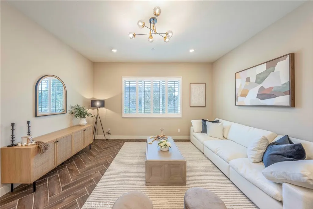 Location, location, LOCATION!! This beautifully maintained Pavilion Park single family detached condo has no shared walls, two car garage and its own private side yard. It's been completely refreshed with fresh paint throughout and updated flooring. Ideally situated in the heart of Great Park, right by the best of all amenities in town, The Pools Park. This home is just a short walk to upcoming retails, Canopy Park (opening 2026), Zoned for award-winning Irvine Unified School District (IUSD) schools, it offers both comfort and convenience. Inside, the home features a spacious open floor plan with a chefs kitchen complete with an upgraded backsplash and stylish herringbone tile flooring throughout the first level designed for easy entertaining. Upstairs, the primary suite offers a relaxing retreat with a walk-in closet, accompanied by two generously sized secondary bedrooms, a full bathroom, and a flexible den space. Additional upgrades include plantation shutters throughout, adding a refined touch.
