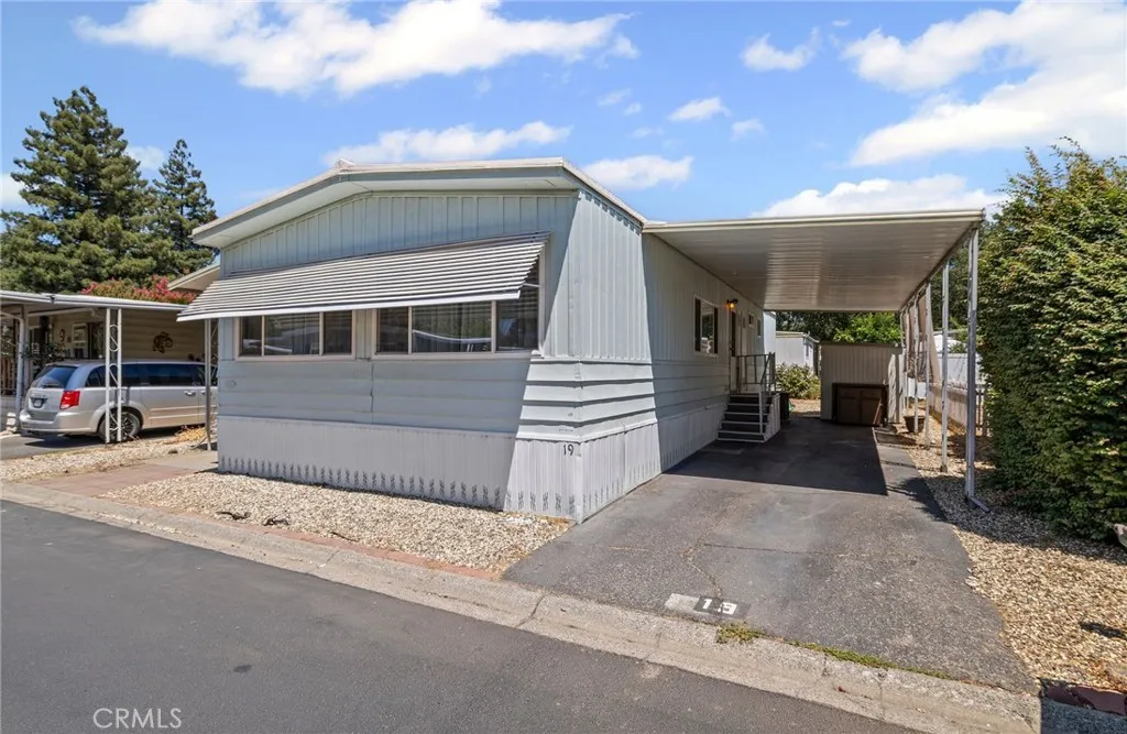 Welcome home to charming space #19! Walk right in to a bright and inviting open-floor plan. With laminate wood floors throughout, and neutral plush carpet in the bedrooms. An ample amount of cupboards, closets and storage space. Upgraded beautiful and spacious laminate kitchen counters, built-in microwave, and a gas range. An elegant light fixture and stunning custom white hutch in the nook. Cherry white cupboards in the bathrooms with lovely pedetstals. Nice sized laundry room including a washer and dryer. Established neighboring trees and bushes providing extra privacy. Generously sized covered patio and private parking. A clean and quaint community pool to cool off on hot summer days or enjoy the clubhouse for entertaining. Space rent provides access to the pool, clubhouse with all it's uses and covers your water, sewer and garbage costs.