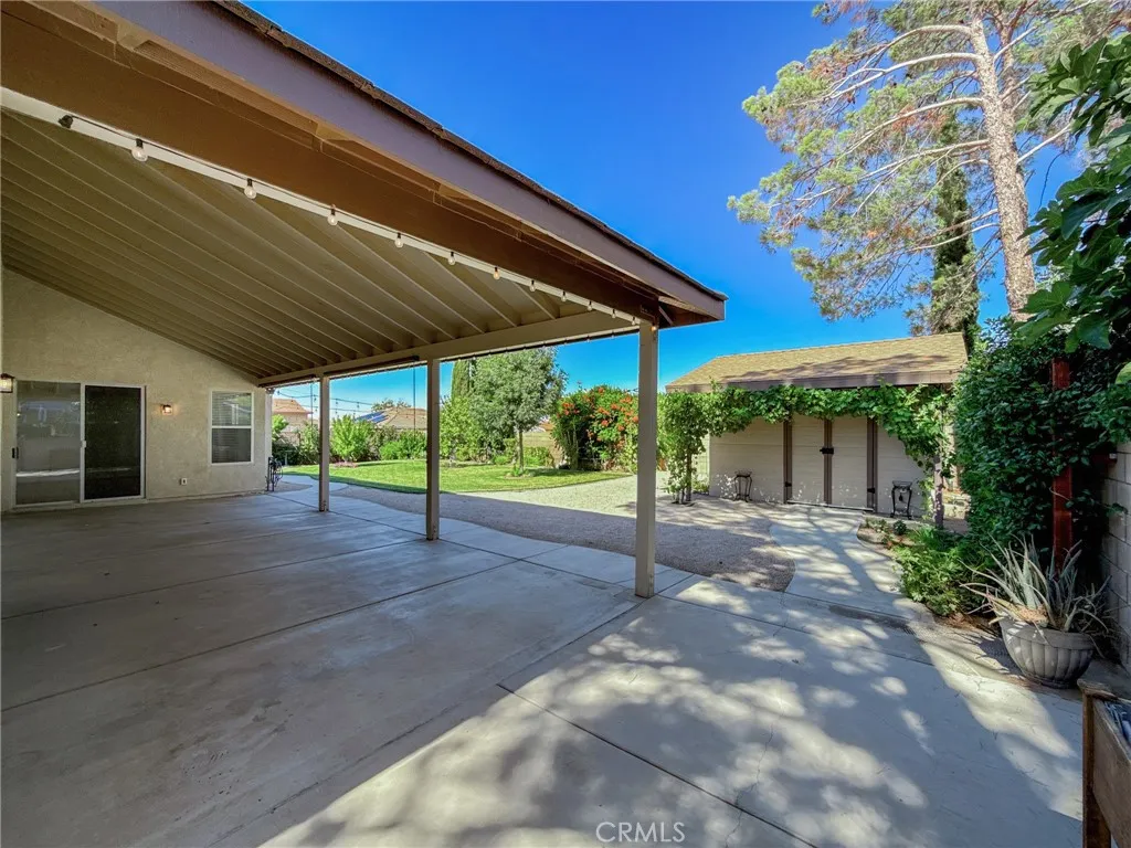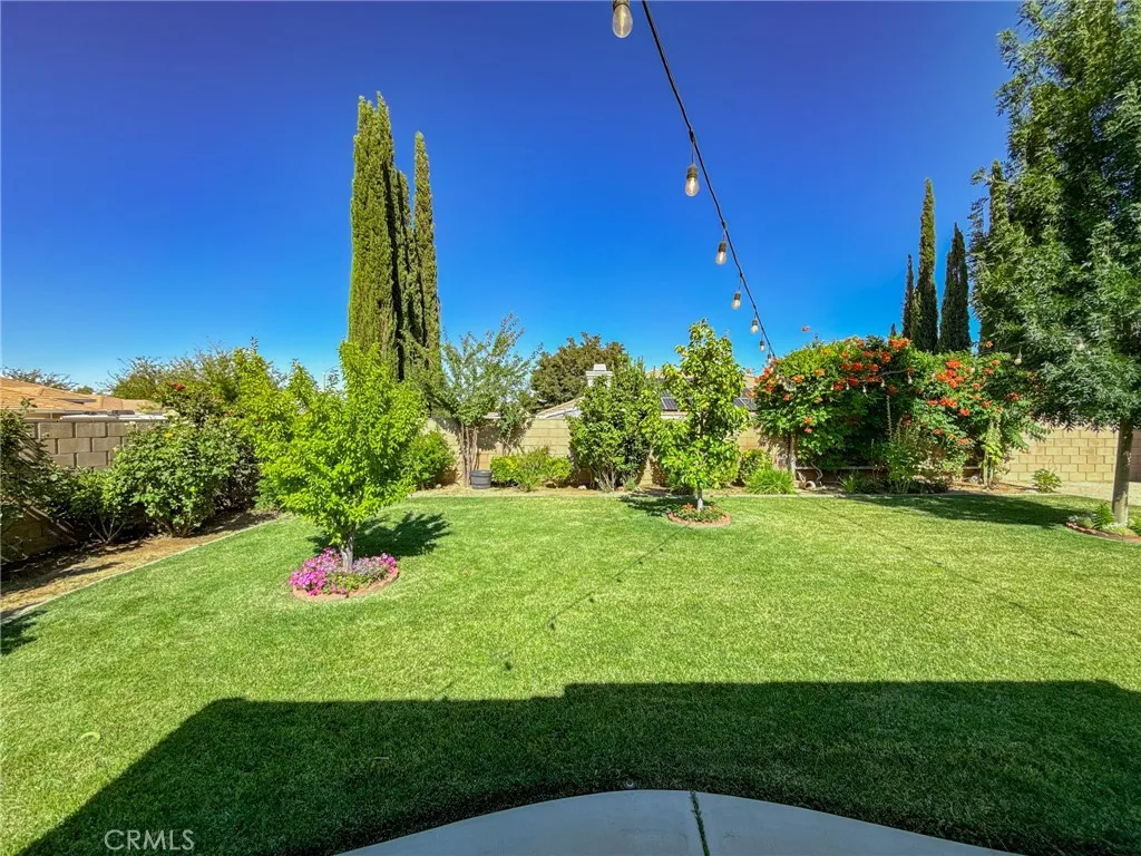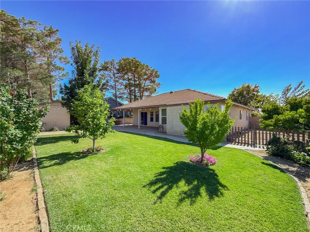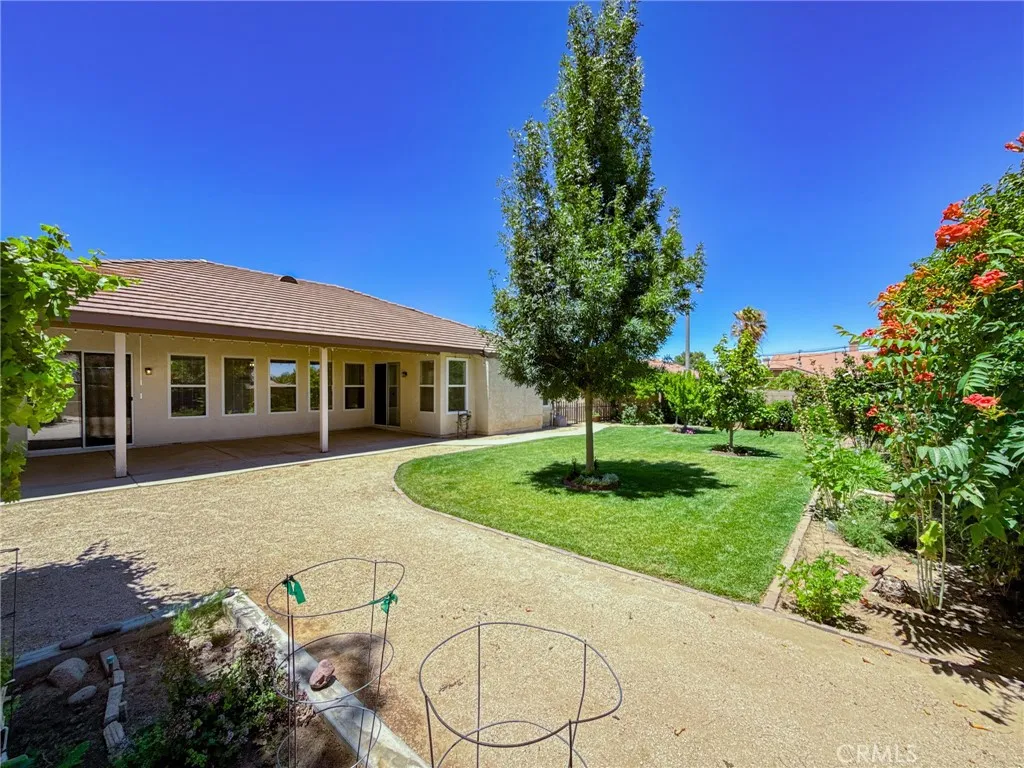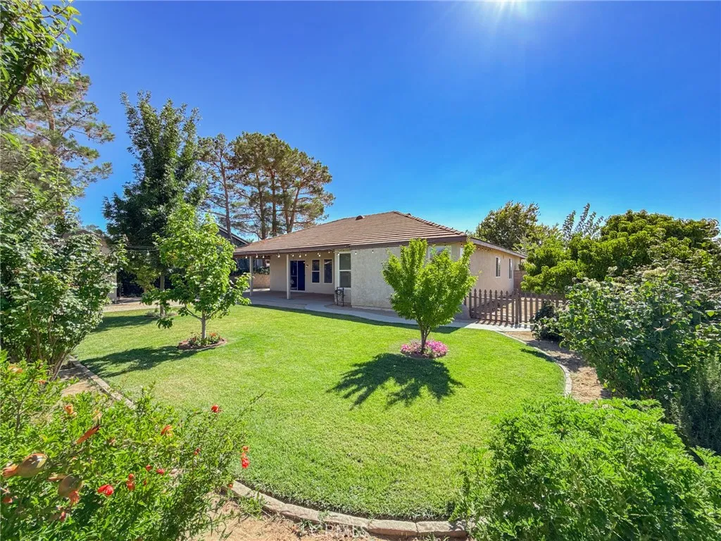 Your dream home just hit the market! Welcome to 43256 Durango Lane a beautifully upgraded 4-bedroom, 2-bath home nestled on a spacious 10,000 sq ft corner lot in a peaceful cul-de-sac. Offering nearly 1,900 sq ft of living space, this home features a desirable split floor plan, placing the primary bedroom on one side and secondary bedrooms on the other for added comfort and privacy. Step inside to high vaulted ceilings with dual fans, fresh interior paint, newer recessed lighting, and modern ceiling fans throughout. The super spacious kitchen is the heart of the home, showcasing white cabinetry, granite countertops, custom tile backsplash, stainless steel appliances, and a spacious layout that flows into the dining area with built-in cabinetry. The primary bedroom includes backyard access through a private sliding door, and both bathrooms have been fully remodeled, with the second bath featuring newer tile flooring. Enjoy smart living with a Nest Google doorbell, three Google cameras, and a new electrical panel with updated GFCIs in key areas including the kitchen, bathrooms, and shed. The home also includes an indoor laundry room and an attached 3-car garage. Outside, entertain under a high vaulted covered patio, or unwind in the beautiful backyard oasis featuring lush green grass, a majestic Raywood tree, and a custom shed (on slab with full electrical). The yard is fully equipped with automatic sprinklers and offers a bounty of fruit treesincluding pomegranate, grapevines, nectarines, pears, plums, blackberries, mulberriesplus a thriving vegetable garden. It's the perfe