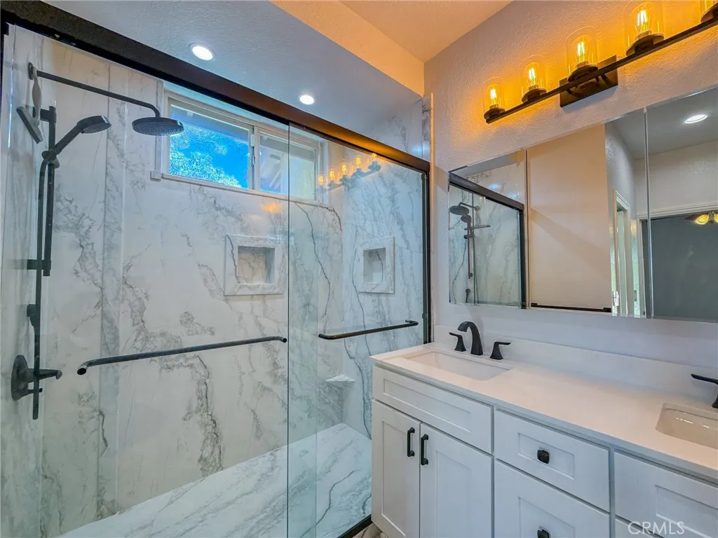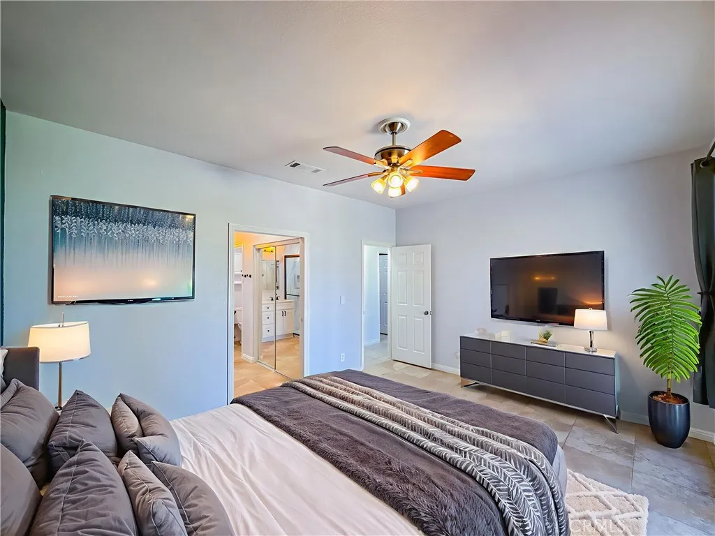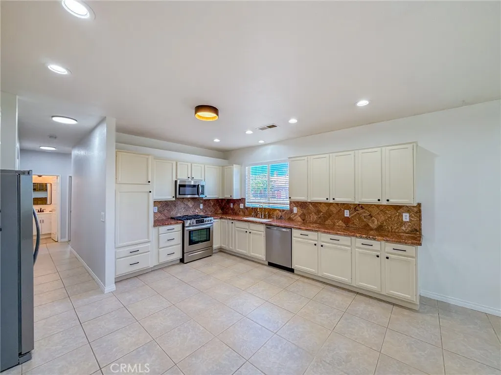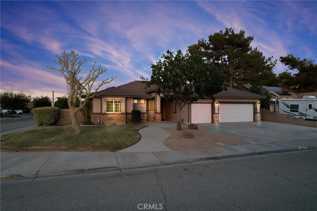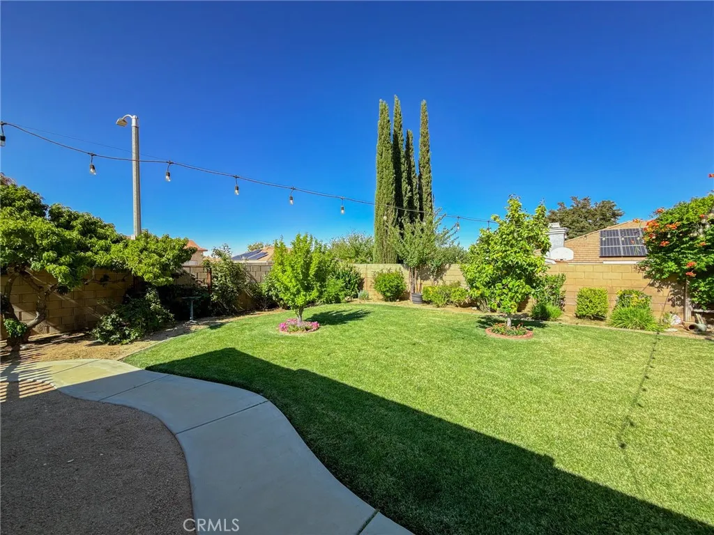 Your dream home just hit the market! Welcome to 43256 Durango Lane a beautifully upgraded 4-bedroom, 2-bath home nestled on a spacious 10,000 sq ft corner lot in a peaceful cul-de-sac. Offering nearly 1,900 sq ft of living space, this home features a desirable split floor plan, placing the primary bedroom on one side and secondary bedrooms on the other for added comfort and privacy. Step inside to high vaulted ceilings with dual fans, fresh interior paint, newer recessed lighting, and modern ceiling fans throughout. The super spacious kitchen is the heart of the home, showcasing white cabinetry, granite countertops, custom tile backsplash, stainless steel appliances, and a spacious layout that flows into the dining area with built-in cabinetry. The primary bedroom includes backyard access through a private sliding door, and both bathrooms have been fully remodeled, with the second bath featuring newer tile flooring. Enjoy smart living with a Nest Google doorbell, three Google cameras, and a new electrical panel with updated GFCIs in key areas including the kitchen, bathrooms, and shed. The home also includes an indoor laundry room and an attached 3-car garage. Outside, entertain under a high vaulted covered patio, or unwind in the beautiful backyard oasis featuring lush green grass, a majestic Raywood tree, and a custom shed (on slab with full electrical). The yard is fully equipped with automatic sprinklers and offers a bounty of fruit treesincluding pomegranate, grapevines, nectarines, pears, plums, blackberries, mulberriesplus a thriving vegetable garden. It's the perfe