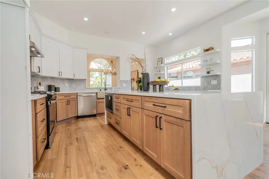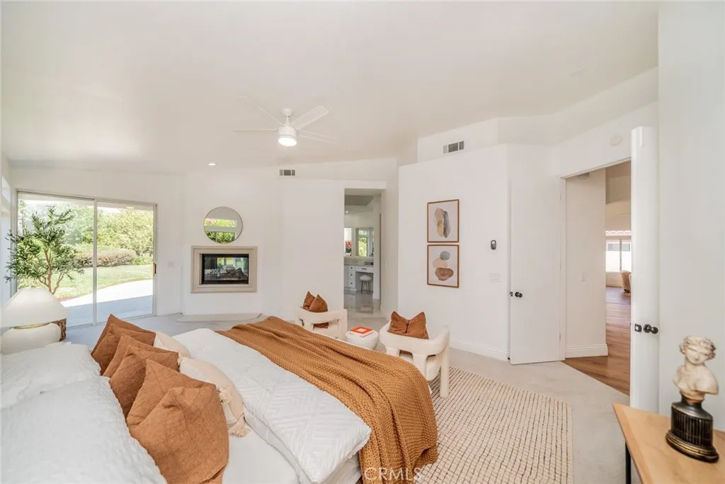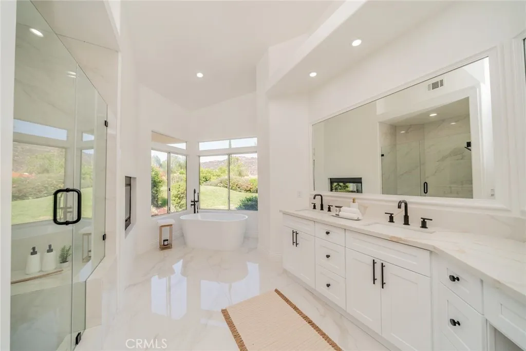 LUXURY LIVING awaits! Welcome to refined elegance in one of Murrieta's most sought after guard gated communities - BEAR CREEK. This immaculate luxury single story home offers a seamless blend of modern design, upscale finishes, and serene views. Perfect for those who crave comfort, style and resort like living! Step inside to discover a newly REMODELED bright and inviting living space surrounded by expansive windows bathing you in natural light and providing stunning views. The gourmet kitchen is a chefs' dream, featuring new stainless steel appliances, custom backsplash, quartz countertops, and spacious center island with waterfall edging, sure to impress and ideal for entertaining. Your living space includes a separate living room and family room both with their own fireplaces. The family room also features a step down bar and is situated to enjoy the surrounding picturesque views just outside along with your adjoining dining room. Your primary suite is a tranquil retreat with a spa-inspired ensuite bathroom featuring large walk in custom tiled shower, soaking tub and double sided fireplace. Additional bedrooms offer generous space for guests or a home office. Bonus- EVERY bedroom features their own ensuite bathroom as well as a 4th hallway bathroom for added convenience- and all have been renovated. Additional upgrades to the home include new flooring throughout, new paint inside and out, new fixtures and lighting, and more. Enjoy exclusive access to community amenities including Jack Nicklaus Signature Golf Course, resort style pool, tennis courts, gym(s), and clubhouse