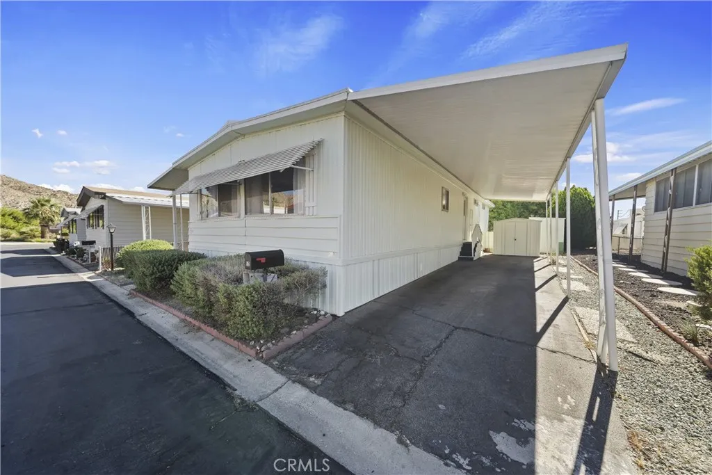 Welcome to your serene oasis in Country Club Estates, nestled in the heart of Yucca Valley's coveted 55+ mobile home community. This charming 2-bedroom, 1-3/4 bath home boasts 1,200 square feet of comfortable living space. Step inside from the front patio deck to the spacious living room with wood shutters that allow you to control the natural light. The heart of the home is the large kitchen, offering generous counter space and storage. Adjacent lies a convenient indoor laundry area. Retreat to the main bedroom suite, your private area for sanctuary and tranquility. Unwind and recharge after a fulfilling day. The second bedroom provides versatility and is ideal for guests or as a cozy den to indulge in hobbies, leisurely pursuits or perhaps as an office. Beyond the comforts of home, Country Club Estates presents a lifestyle of leisure and recreation. Situated within walking distance of Hawks Landing Golf Club, enthusiasts can tee off amidst picturesque landscapes and pristine greens. After a round of golf, savor a delectable meal at The Roost Cafe at Hawks Landing. Embrace the vibrant spirit of Yucca Valley, where natural beauty and modern conveniences await. From scenic hiking trails to eclectic boutiques and galleries, there's always something new to explore here. Whether you're seeking adventure or simply seeking solace in the serene desert landscape, Country Club Estates offers a sanctuary to call home. Don't miss your chance to experience the best of 55+ living in this coveted community. Schedule your showing today and make this tranquil retreat yours.