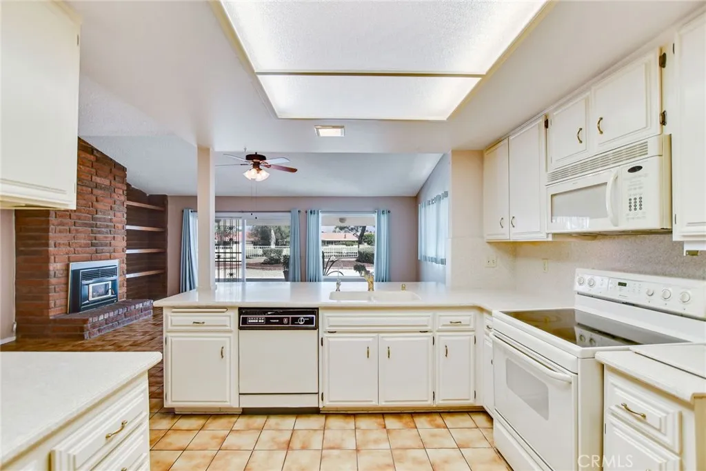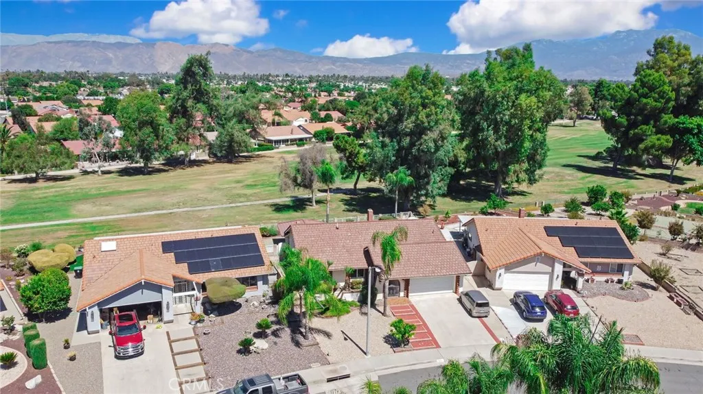 Another great golf course home on a quiet inside cul de sac in ever popular Seven Hills 55+ golf community, this home features 3 bedrooms, 2 baths and 1756 sq ft. of living space w/gorgeous golf course views. This floor plan has a floor to ceiling double fireplace w/built in bookcases shared by the the living family room that also share vaulted ceilings, a bright light interior, bright kitchen open to the family room, 2 guest bedrooms and a large master w/a cozy window seat, built in TV niche and an en suite bathroom with a walk in shower. There is a huge covered patio out back to take advantage of the views of the golf course and Mt San Jacinto.