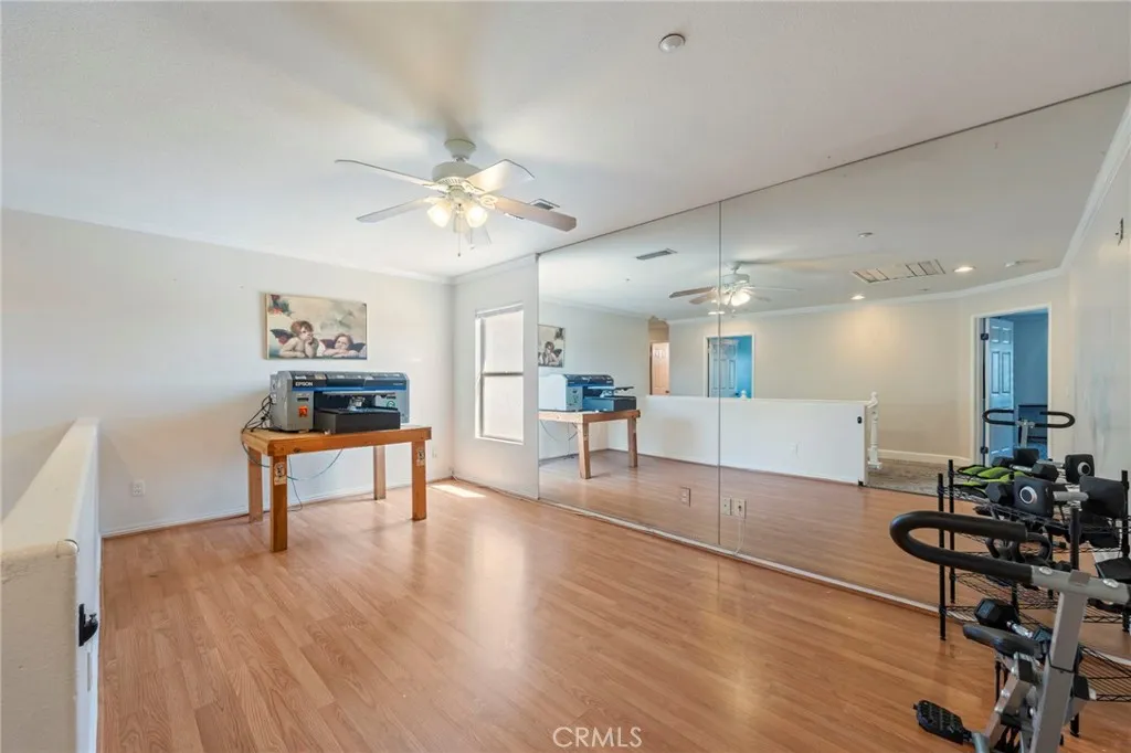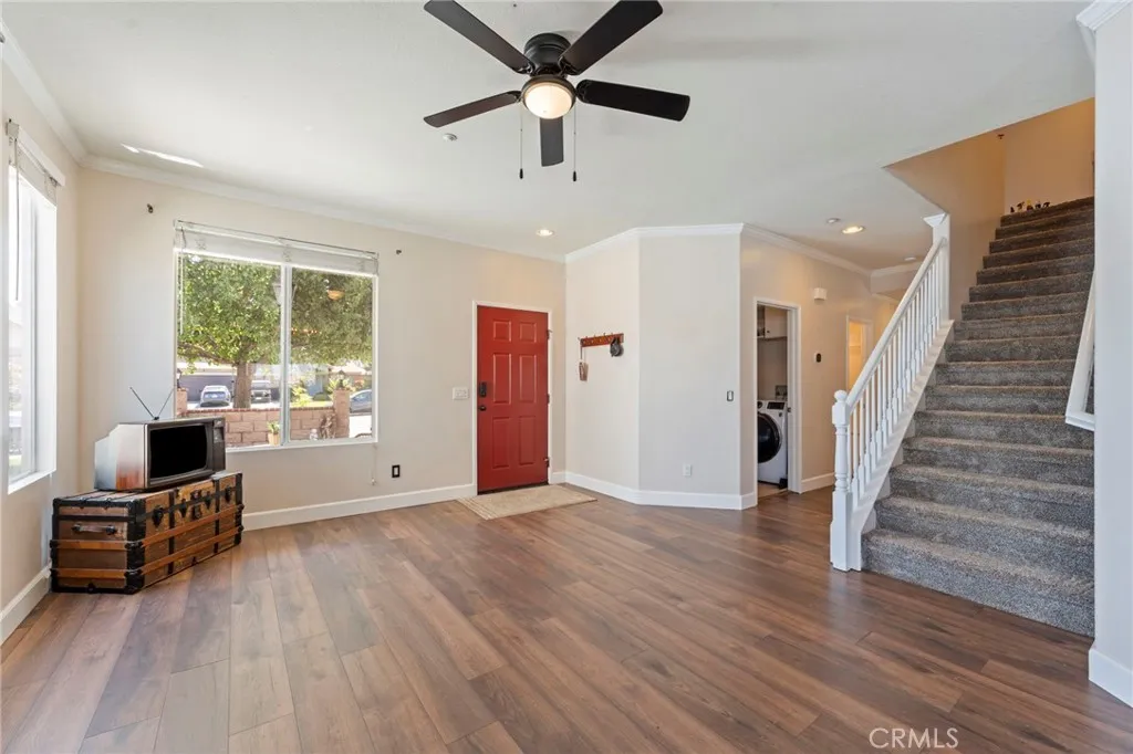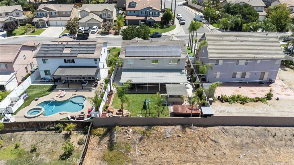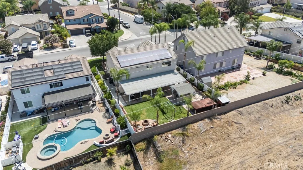 PAID OFF SOLAR! This stunning 5-bedroom, 3-bathroom home is located in one of Riversides most desirable neighborhoods, offering both comfort and convenience. From the moment you arrive, the front courtyard with lush potted plants and a cozy covered porch seating area sets the tone for whats inside. Step through the doors and discover a spacious floorplan with thoughtful updates throughout. The remodeled kitchen features modern upgrades perfect for entertaining, while fresh interior paint creates a bright and welcoming feel. A downstairs bedroom and bathroom provide flexibility for guests, multigenerational living, or even rental income. Upstairs, the home continues to impress with generous bedrooms and abundant natural light. Practical features include a three-car garage with built-in attic storage, a 240-volt outlet for EV charging, and fully-owned solar panels (24 total) for energy efficiency. The extended driveway offers parking for four vehicles, plus RV hookups with water, electrical, and sewer access. The backyard is truly a private retreat designed for entertainment and relaxation. Enjoy a 1,000 sq. ft. covered patio, a built-in barbecue island, fire pit lounge, 14-foot swim spa, and even a high-quality steel swing set. Framed by new white vinyl fencing with solar lighting and a block wall for privacy, the yard backs to open land, giving you breathtaking sunset views with no rear neighbors. Additional upgrades include granite countertops, hardwood floors, updated lighting, and a remodeled bathroom vanity. Every detail of this home reflects pride of ownership. Dont mi