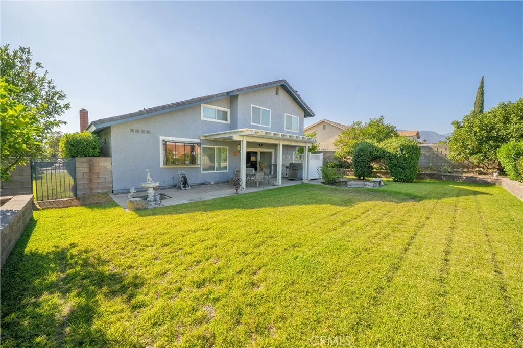 Welcome to 1354 Lakewood Avenue, a beautifully maintained 4-bedroom, 3-bath residence nestled in the heart of Upland. This immaculate home showcases true pride of ownership and features a paid-off solar system for energy efficiency and peace of mind. Step inside to a formal living room with soaring vaulted ceilings and a cozy fireplace, offering the perfect setting for entertaining or relaxing with family. The gourmet kitchen is a chefs dream, highlighted by custom wood-and-tile flooring, rich cabinetry, corian counters, and a premium Viking stainless-steel rangetop. Overlooking the breakfast nook and family room, this open-concept design is perfect for gatherings of all sizes. Upstairs, the luxurious primary suite boasts dramatic volume ceilings, a private balcony overlooking the front yard, and a spa-inspired bathroom with a beautifully tiled walk-in shower. Three additional bedrooms, a stylishly updated bathroom, and a loft areaperfect as a homework station or small officecomplete the upper level. Outside, the backyard is designed for both relaxation and entertaining. Surrounded by manicured landscaping, this private retreat includes over 30 feet of gated RV parking, along with a variety of fruit treespluot, lemon, plum, peach, avocado, orange, and nectarine. Its the perfect space to host summer gatherings or simply enjoy your morning coffee in a serene setting. This exceptional property blends comfort, elegance, and practicality, delivering the ultimate Southern California lifestyle in one of Uplands most desirable neighborhoods.