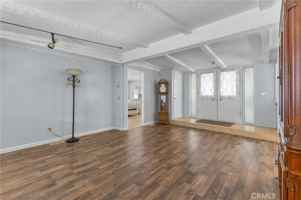 Charming 55+ home with new HVAC and electronic chair lift! Welcome to this beautifully maintained 2-bedroom, 2-bath residence offering 1,536 square feet of comfortable living. Filled with natural light, the home features two inviting family rooms and a separate dining area, creating plenty of space for both everyday living and entertaining. The updated kitchen boasts new stainless steel appliances, a convenient island, and abundant storage, making it a true centerpiece of the home. A large deck extends the living space outdoors, perfect for relaxing or enjoying the evening breeze. An electronic chair lift adds accessibility and ease. Located in a community with a community pool and recreation room, this property combines comfort with convenience. Just minutes from the freeway, shopping, and entertainment, it offers an ideal blend of privacy and accessibility.