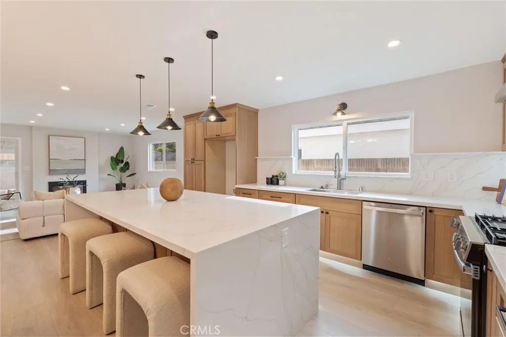 Welcome to 2534 E Hoover Avenuean exceptional single-story home that has been completely remodeled inside and out, blending modern design with a prime Orange location. This 4-bedroom, 2-bathroom residence offers 1,645 square feet of bright, open living space on a 6,271 square foot lot. Step inside to discover a spacious open-concept layout enhanced by brand-new luxury vinyl plank flooring, fresh recessed lighting, and an abundance of natural light. The designer kitchen serves as the centerpiece of the home, featuring sleek quartz countertops, new cabinetry, and stainless steel appliancesperfect for everyday living and entertaining. Both bathrooms have been tastefully renovated with stylish, contemporary finishes, giving the home a fresh, move-in ready appeal. Additional highlights include new interior and exterior paint, new sod grass with a sprinkler system for easy upkeep, and thoughtfully chosen finishes throughout. The backyard provides plenty of space for outdoor dining, gardening, or relaxing under the California sun, while the long driveway and attached garage offer ample parking and storage. Located in one of Oranges most desirable neighborhoods, this home places you near top-rated schools, parks, and just minutes from the charm of Old Towne Orange with its historic architecture, dining, and shopping. With quick access to the 55, 57, 22, and 91 freeways, as well as local attractions like Disneyland Resort, Angel Stadium, and Chapman University, this remodeled home offers both comfort and convenience in one perfect package.