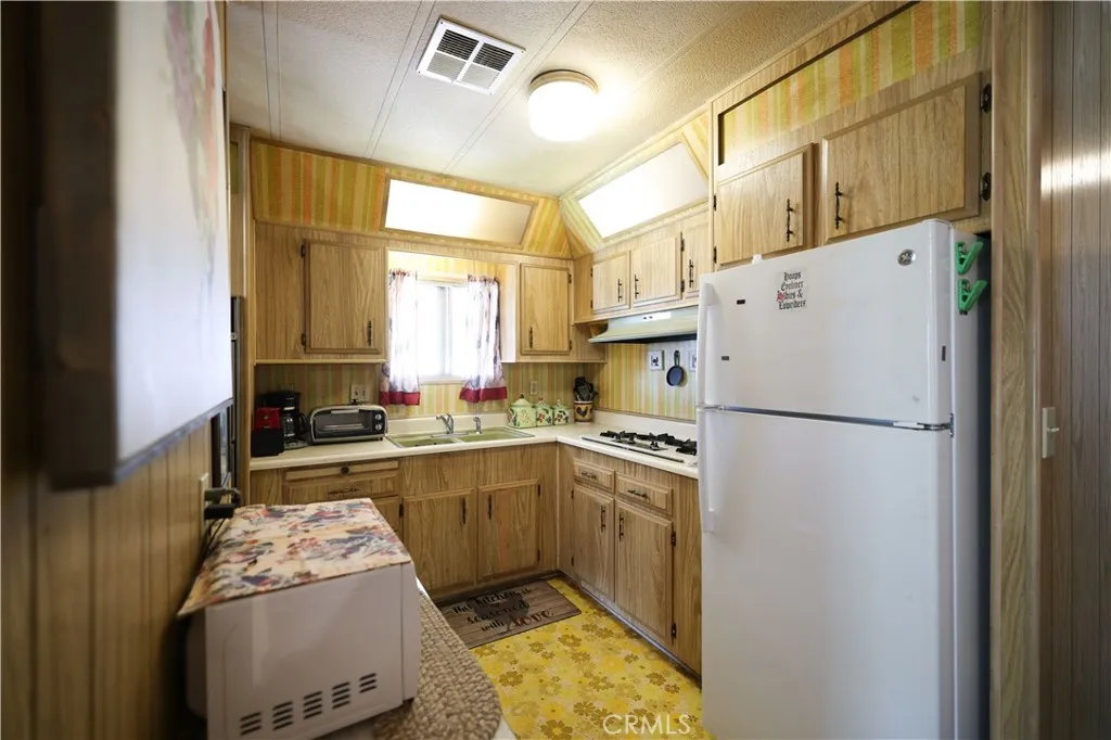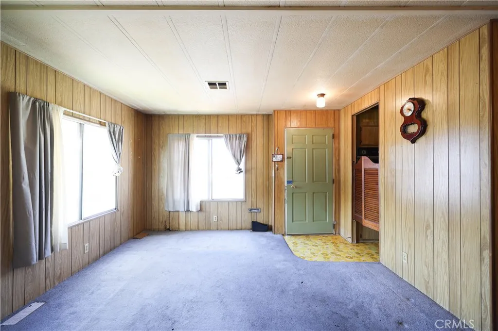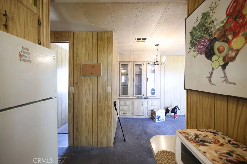 This 2-bedroom, 2-bathroom home is nestled in a peaceful 55+ community offering a tranquil lifestyle with great amenities. Step into a cozy living room that flows seamlessly into the dining area, perfect for entertaining or relaxing. Enjoy the convenience of an indoor laundry area, and the added charm of a small grassy side yard and fruit trees in the backyarda gardeners delight! The home comes with one dedicated parking space. Though in original condition and in need of some TLC, this home is priced right for a quick salea great opportunity to add your personal touch and make it your own. Community amenities include a clubhouse/community center and a refreshing pool, ideal for socializing and staying active. Don't miss outsee you in escrow!