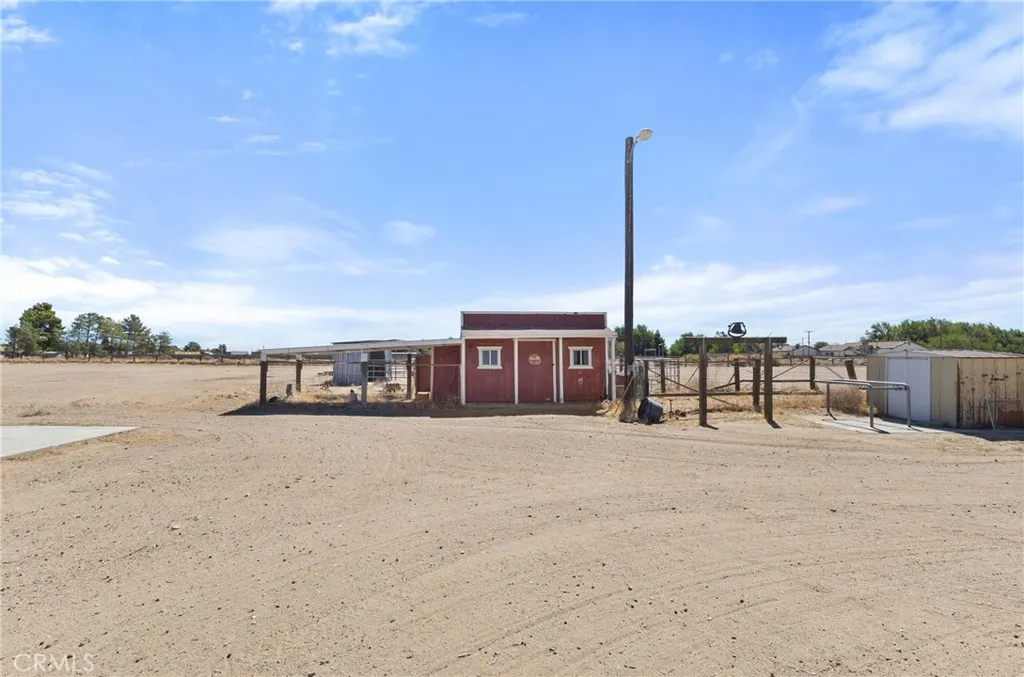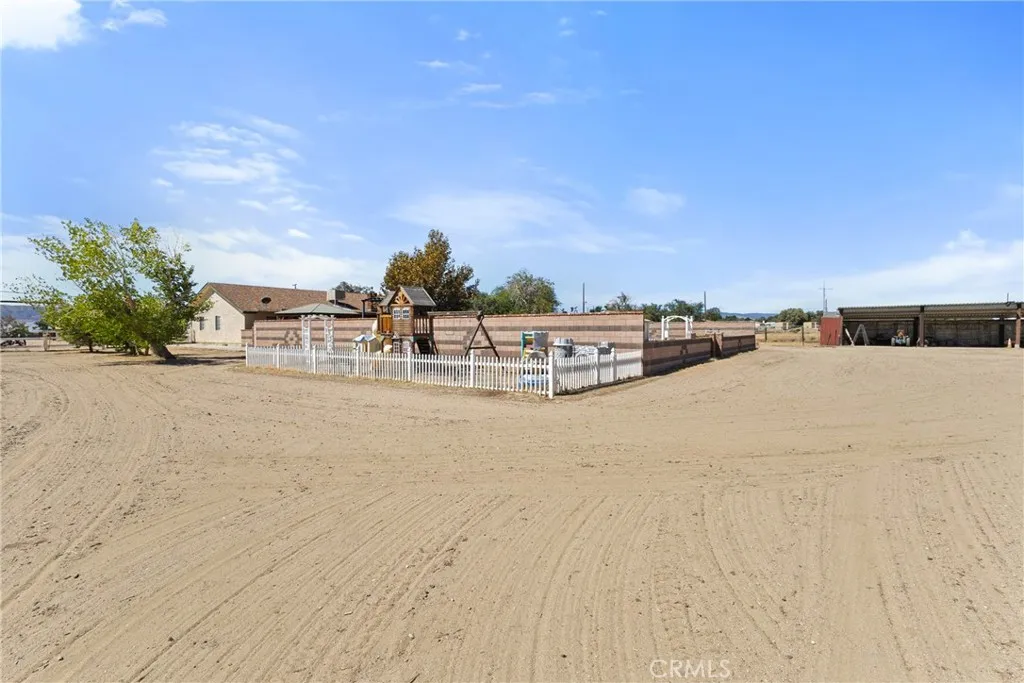 Spacious Antelope Acres Retreat on 5 Acres with Workshop, Horse Facilities & Pool!! Welcome to your private desert retreat! Situated on 5.01 fully fenced acres in peaceful Antelope Acres, this 3-bedroom, 3-bathroom home offers 2,221 sq. ft. of living space with modern upgrades, a versatile workshop, and extensive outdoor amenities designed for comfort, convenience, and country living. Inside, the open kitchen is a chefs delight, featuring oak cabinetry, granite countertops, tiled backsplash, a farmhouse sink, and a gas range. A breakfast bar, built-in china cabinet, and desk area add both charm and functionality. Just off the kitchen, the large laundry/mudroom includes abundant storage, a pantry, sink, and an adjacent full bathroom with an oversized tiled shower. The living areas are designed for relaxation and entertaining. A cozy family room centers around a large brick-hearth fireplace with a pellet stove insert, while the living rooms bay windows flood the space with natural light. The hall bathroom offers dual sinks and an updated tub/shower combo. All bedrooms are generously sized with ceiling fans, mirrored closets in the secondary bedrooms, and a primary suite featuring a walk-in closet and private bath. Warm wood doors and accents throughout adds timeless character. Outside, the property is a dream for both recreation and work. The backyard retreat includes an above-ground pool, spa, kids play area, and a garden area for homegrown produce. Horse lovers will appreciate the corrals with shaders, a tack/tool shed, and an feed barn. The true showpiece is the 40x60 work