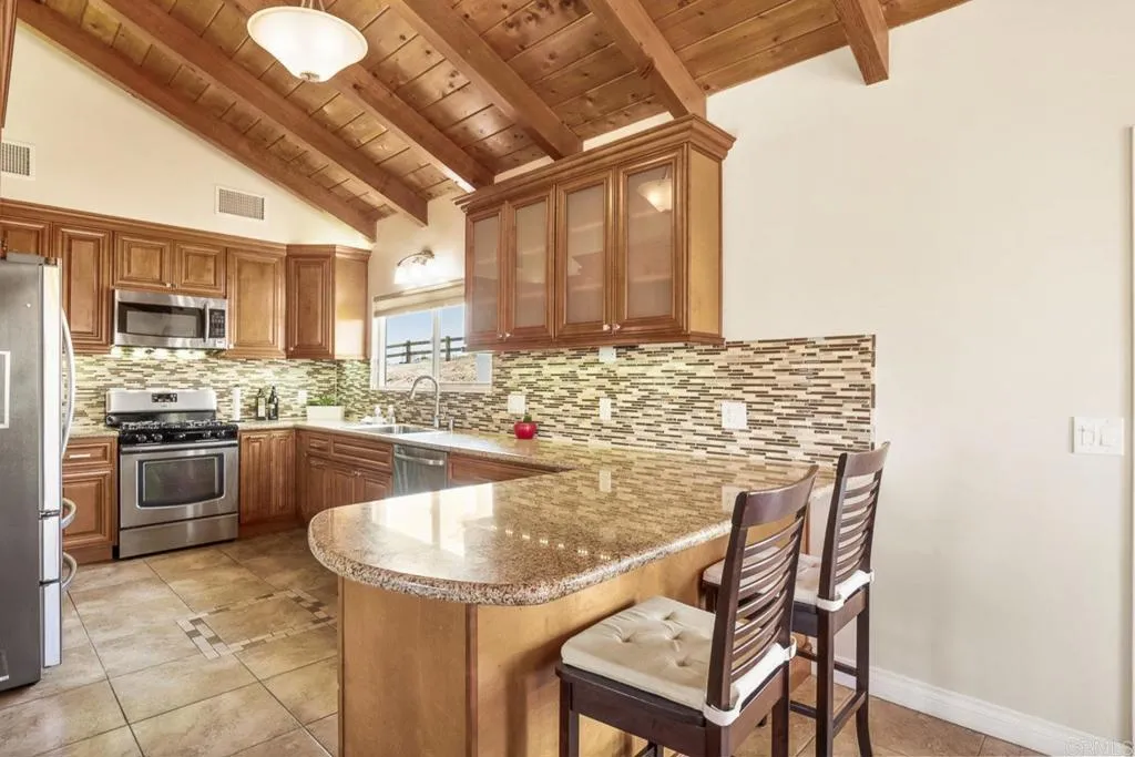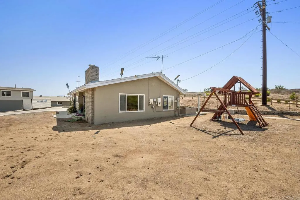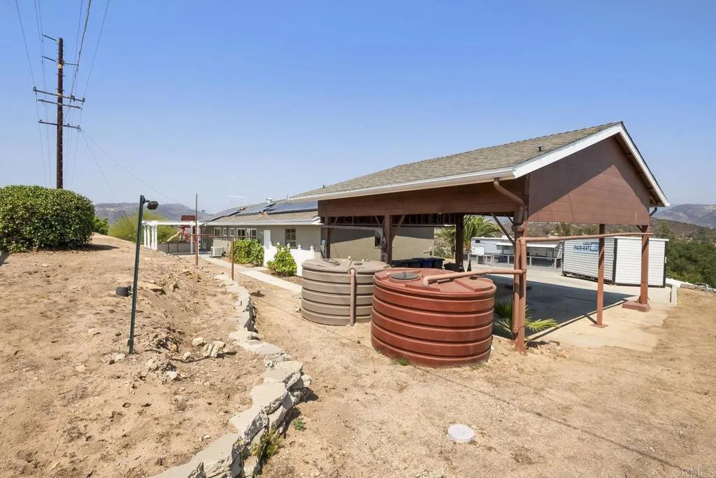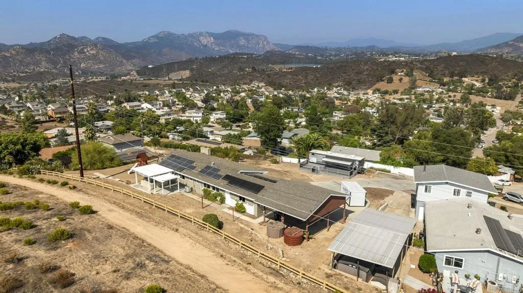 Discover your very own slice of paradise in this charming single-level Lakeside home on a sprawling 0.8-acre lot with breathtaking views. Wake up to stunning sunrises from the living room, featuring soaring vaulted ceilings with exposed beams. Savor every meal while taking in the rolling hills beyond. The thoughtfully upgraded kitchen (LG refrigerator included) flows seamlessly to the backyard oasis. Relax under the custom pergola with automatic louvres while enjoying the tranquility this property offers. You even have your very own grape vines (yes, the grapes are growing). The property also includes a swing set and play structure. This well-appointed home offers 3 bedrooms and 2 bathrooms, plus an oversized 2-car garage with a deep sink, workspace, and storage potential, and an LG washer/dryer (included). The covered RV carport accommodates your recreational vehicles and outdoor lifestyle dreams. Extensive updates since 2012 include: Milgard windows throughout, completely remodeled kitchen and bathrooms, new electrical service, Bradford-White water heater, Eccopure water softener, and Sunrun solar system. Eco-friendly features include seamless rain gutters that feed into two 1,100-gallon rainwater collection tanks for your irrigation needs. There are several fruit trees on the property and room for a garden, whatever you want to make it yours! Bonus: A 2018 Coachman Catalina RV with full hookups (power, water, sewer) and front deck conveys with the property (personal property-no value) - perfect for guests. Don't miss this rare opportunity to own a turnkey Lakeside retrea