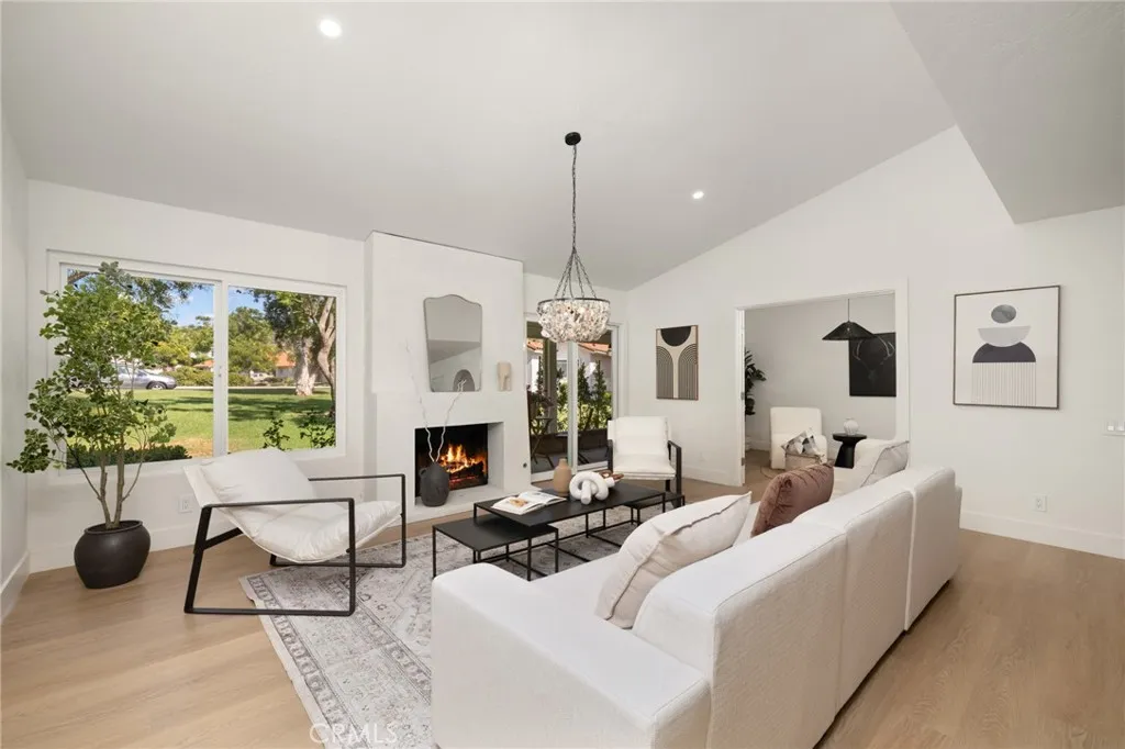 This one-of-a-kind home shines with sophistication, quality workmanship, and timeless character. Every inch has been thoughtfully redesigned with professional designer finishes, creating a residence that feels both fresh and refined. Located at the end of a cul-de-sac, the property sits alone with no neighbors on either side and opens to a wide greenbelt. Two covered patios extend the living space outdoors, perfect for relaxing or entertaining. Inside, the home radiates elegance with new double-pane windows and sliders that fill the rooms with natural light. Fresh designer paint and premium vinyl plank flooring create a warm, welcoming backdrop. Every finishfrom fixtures to cabinetry to lightingwas hand-selected by a professional designer to balance modern comfort with old-world European charm. The laundry has been relocated indoors for added convenience, blending functionality with style. The chef-inspired kitchen is a true showpiece, featuring crisp shaker cabinetry, a quartz marble island, and striking designer light fixtures. The living room, centered around a stucco fireplace, is highlighted by a hand-picked shell chandelier, bringing artistry and sophistication. The primary suite offers a spa-like retreat with natural stone flooring and an oversized walk-in shower. Throughout the home, thoughtful design and character details elevate the living experience, making it both sophisticated and comfortable. Recent upgrades and highlights include: Covered patios on both sides of the home, new double-pane windows and sliders, fresh paint and new premium flooring, newer furnace