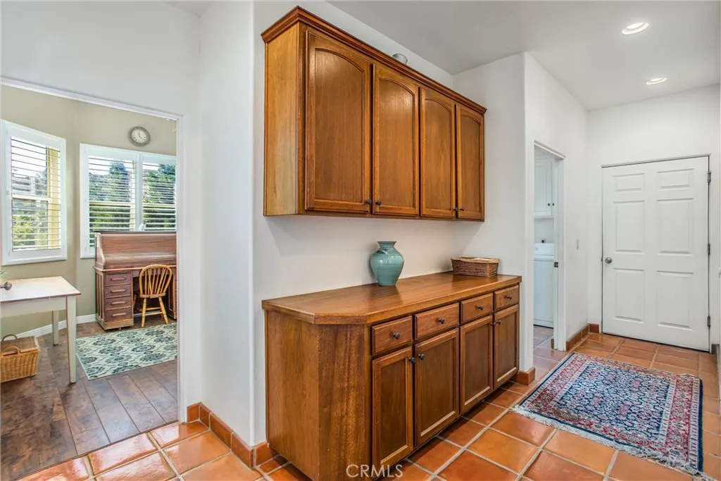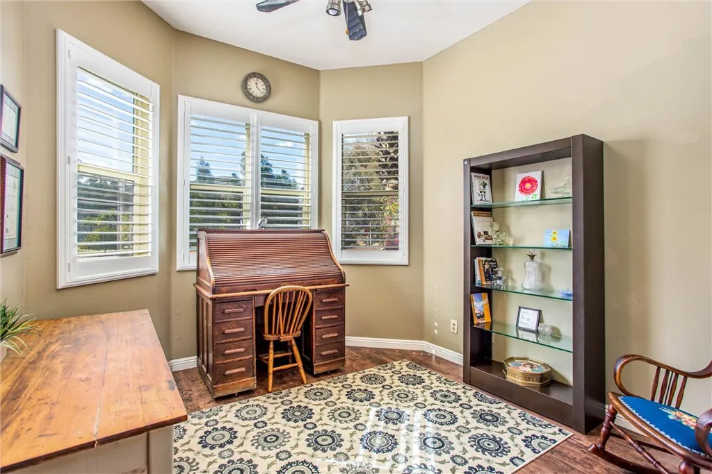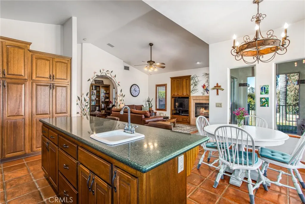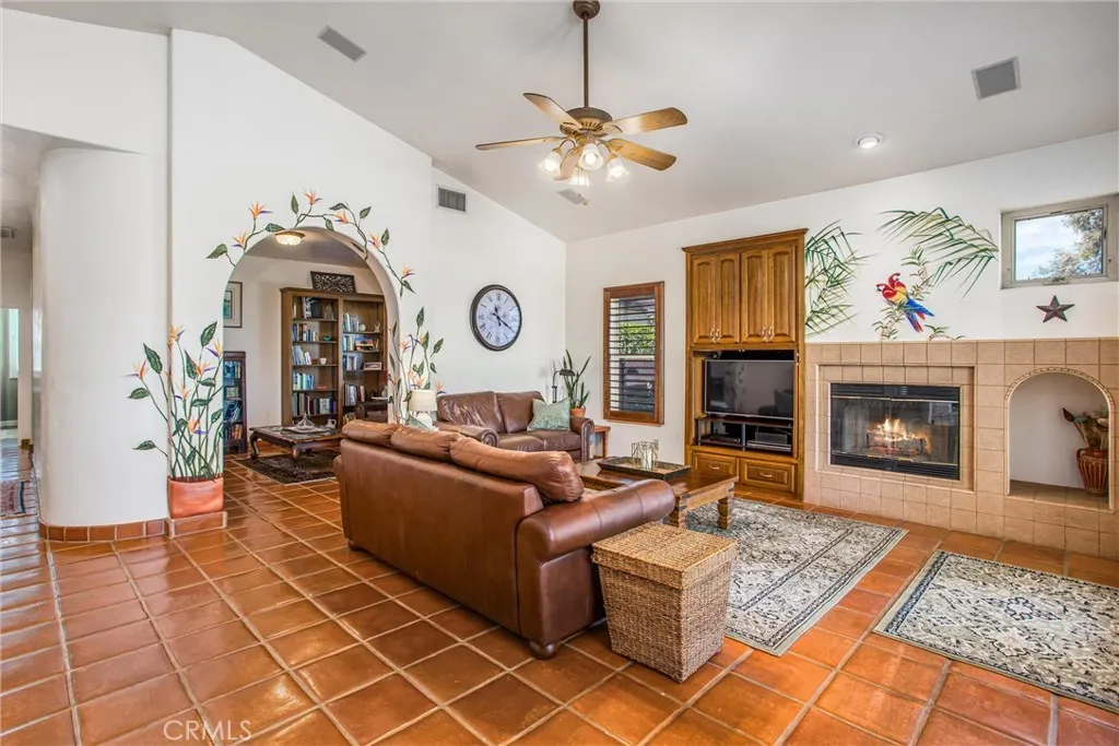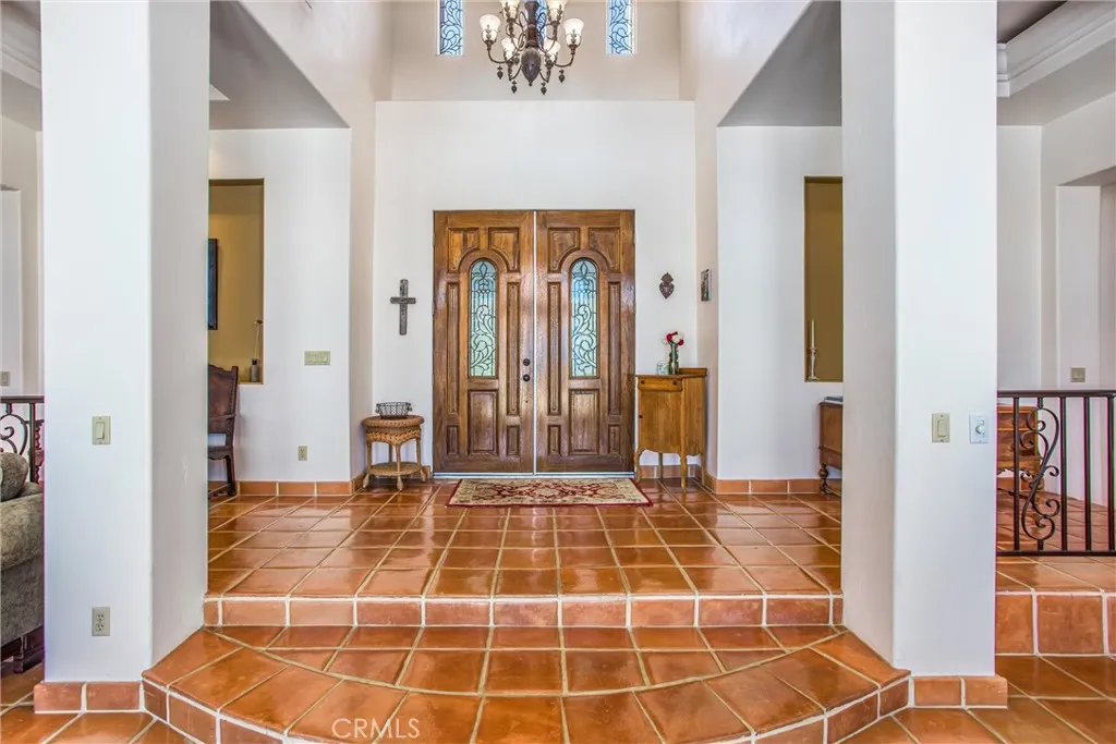 Nestled on a sprawling 10.85 acre estate in the prestigious gated community of Tremont Ranch, This stunning Mediterranean-style home offers unparalleled views of Redlands, San Timoteo Canyon and surrounding mountains. Built in 2000, this single story home boasts 4 bedrooms, 3 baths, and 3034 sqft of luxurious custom living space. The estate includes a 4 car attached garage, and a 1500 sqft detached garage with a lift. Perfect for the car enthusiasts, and for the horse lovers there is a corral. Enjoy your own private well, 22 mature fruit trees, and a sparkling poolside retreat with breathtaking canyon views. This home has an updated HVAC unit, 220v hookups and cleanout for your RV, and the home is renovated with a whole house plumbing re-pipe. Work at home with an office/library. The entire home has custom mahogany wood cabinetry. The spacious primary bedroom suite includes sitting area and bathroom with shower, and jetted tub. Solid wood doors wider than standard are throughout the home. Lincoln pavers and wood flooring elevate the interior with custom textured walls. Plantation shutters and ceiling fans are in all bedrooms. The kitchen has granite countertops and backsplash, with views of the pool. Fireplaces are in the den and living room for those chilly nights. This home can be sold fully furnished offering a move-in-ready experience. This custom home provides ample room to grow on this expansive estate. Whether you are sipping coffee poolside overlooking the canyon, or picking fruit from your trees, this South Redlands haven combines luxury, privacy, views for days an