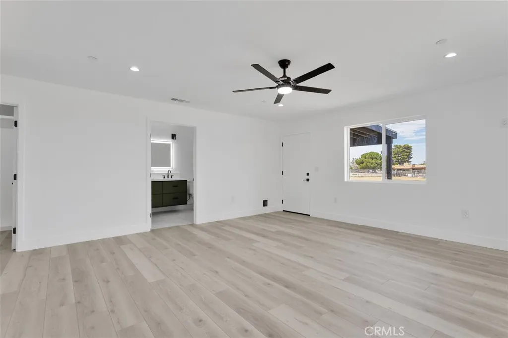 Introducing 16212 Mesquite St in Hesperia, CAa beautifully crafted new construction home that blends bold design with everyday comfort. Offering 2,413 square feet of living space, this residence features 4 bedrooms and 2.5 bathrooms on a full 1-acre lot. The interior showcases modern accents throughout, highlighted by luxury laminate flooring and a striking custom two-tone kitchen with quartz countertops, sleek finishes, and statement lighting that elevates the heart of the home. The primary suite serves as a private getaway with a walk-in closet and a spa-like bathroom complete with a double vanity sink, soaking tub, and separate shower. A three-car garage, laundry room, and inviting back patio enhance everyday living, while the cozy electric fireplace with custom paneling adds a stylish focal point to the living area. Energy-efficient solar panels provide long-term value, and the convenient locationjust minutes from Hesperia City Hall, Victor Valley Mall, and the I-15makes this home the perfect balance of modern style, thoughtful design, and accessibility.