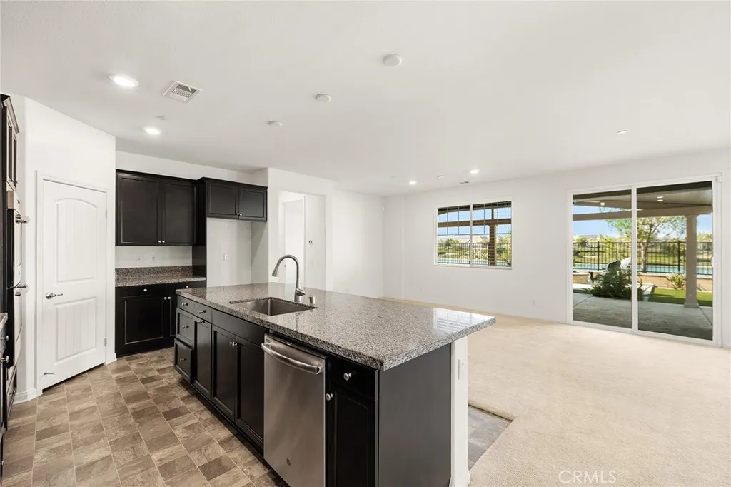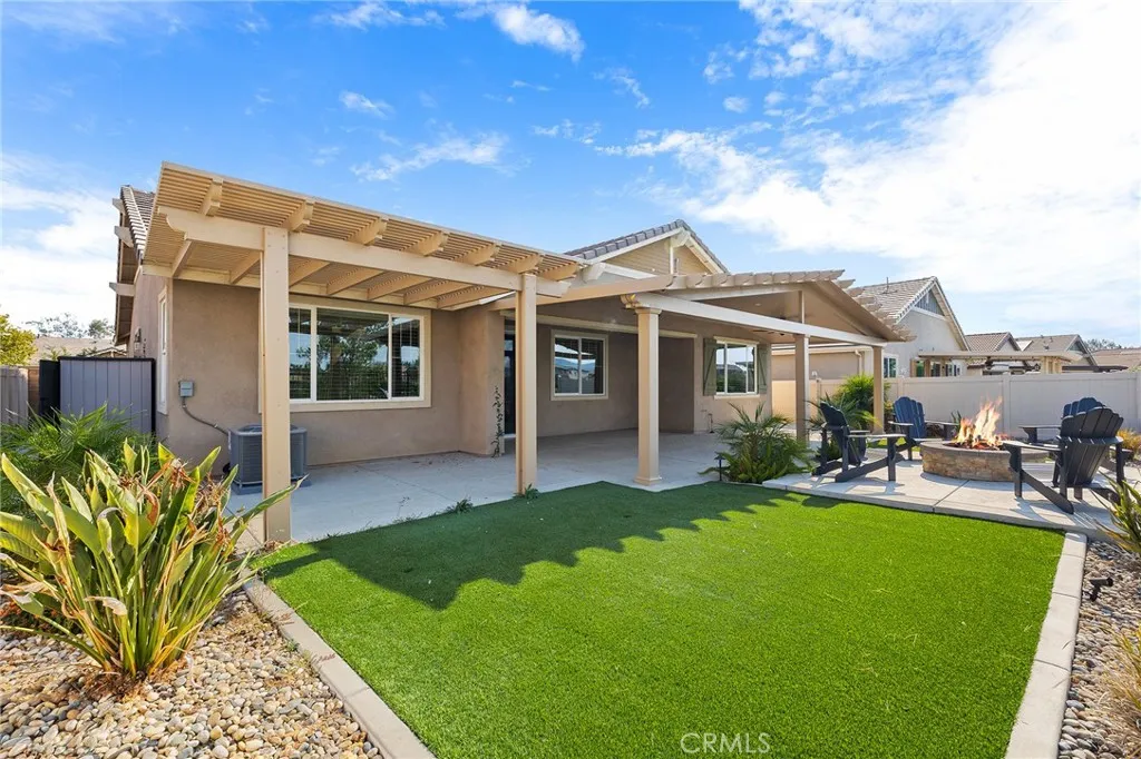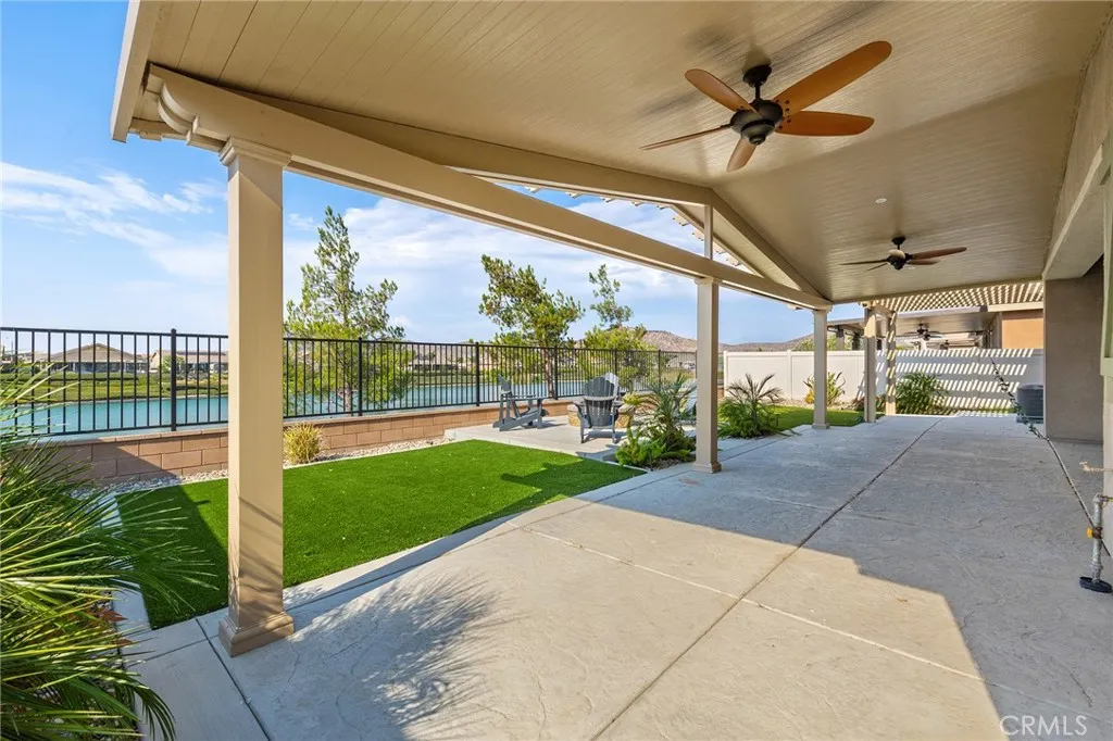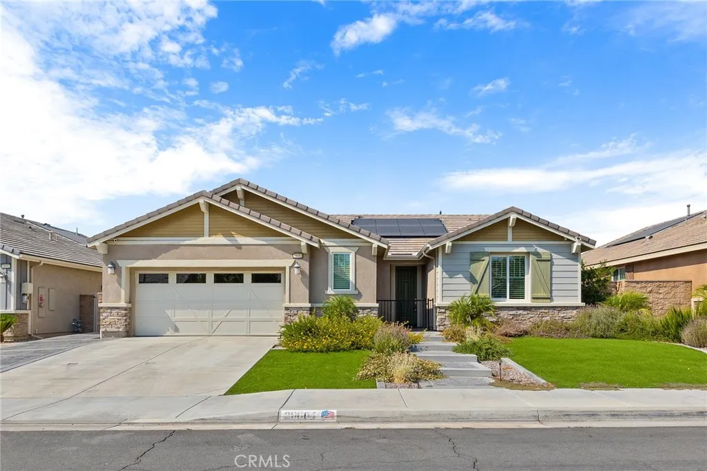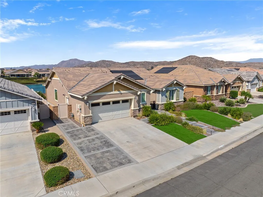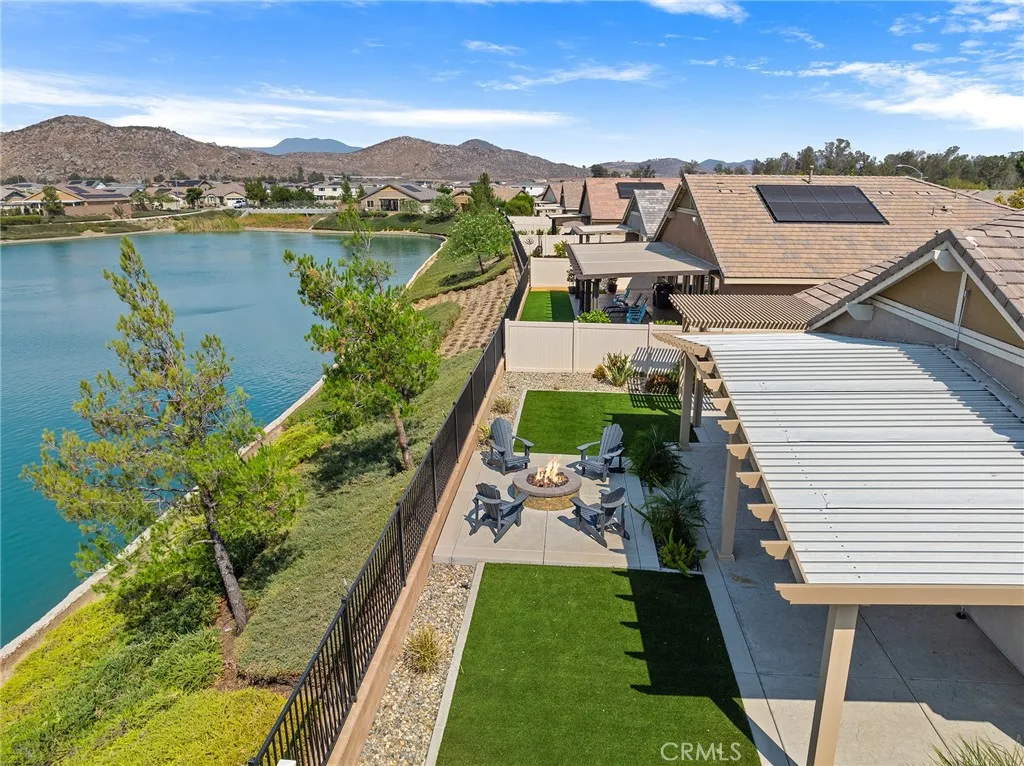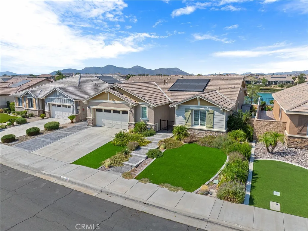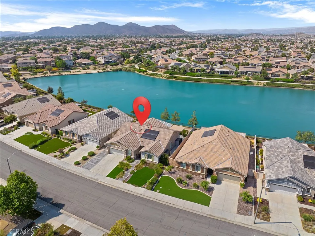 Welcome to lakeside living at its finest! This stunning single-story home in the gated community of The Lakes in Menifee offers 3 bedrooms, 2.5 bathrooms, and 1,937 sq. ft. of thoughtfully designed space. From the moment you enter, your eyes are drawn to the expansive rear windows framing with unobstructed, breathtaking views of the lake; a rare and captivating backdrop from both the great room and the primary suite. The open-concept layout features high ceilings, recessed lighting, and a gourmet kitchen with granite countertops, stainless steel appliances, walk-in pantry, and center island. The primary suite includes a spa-inspired bathroom with dual sinks, soaking tub, separate shower, and walk-in closetall with those incredible lake views. Step outside to your private oasis with a covered Alumawood patio, recessed lighting, ceiling fans, artificial turf, stamped concrete, and a built-in gas fire pit overlooking the water. The backyard also includes a 220V hookup, perfect for a spa. Additional highlights: leased solar, tankless water heater, oversized two-car garage with storage/workshop space, extra-wide driveway, handicap-accessible entry, and a full security system. The Lakes community offers resort-style amenitiesclubhouse, pools, waterslides, fitness center, walking trails, and moreall just minutes from shopping, dining, schools, and the 215 freeway. Dont miss this rare opportunity to own a **true lakefront home with unmatched views** in one of Menifees most sought-after communities!