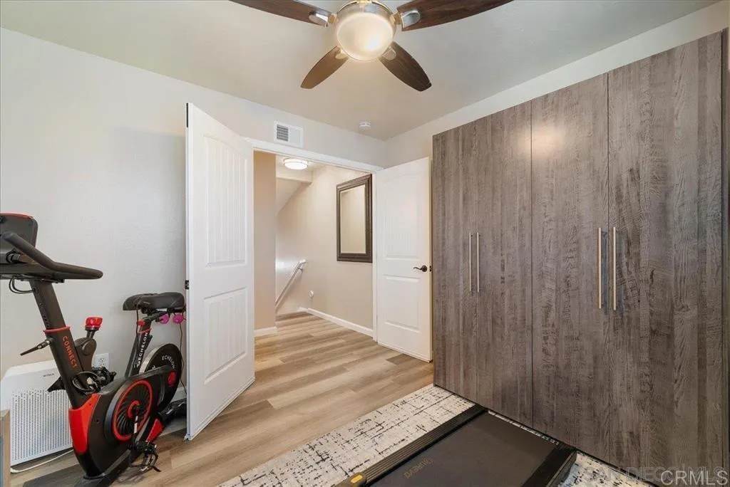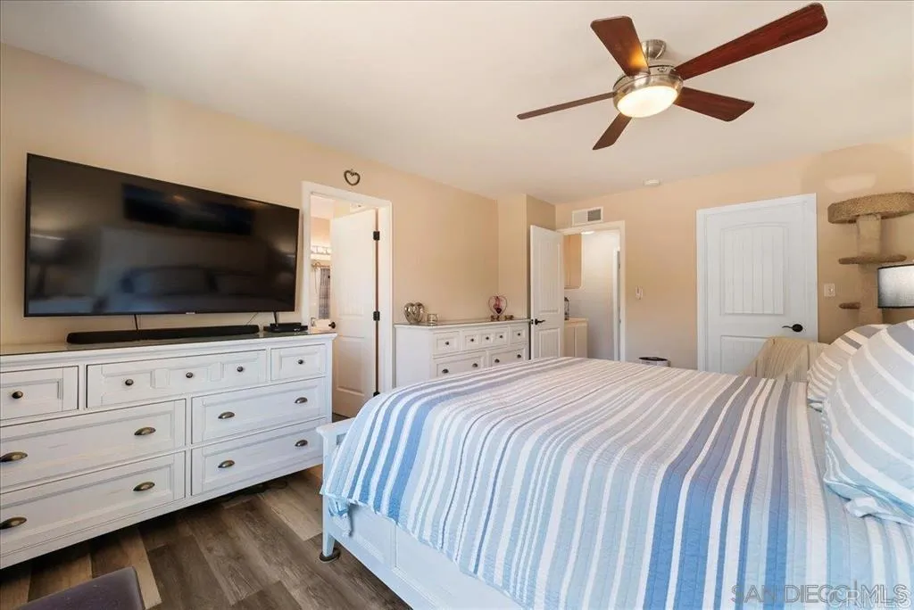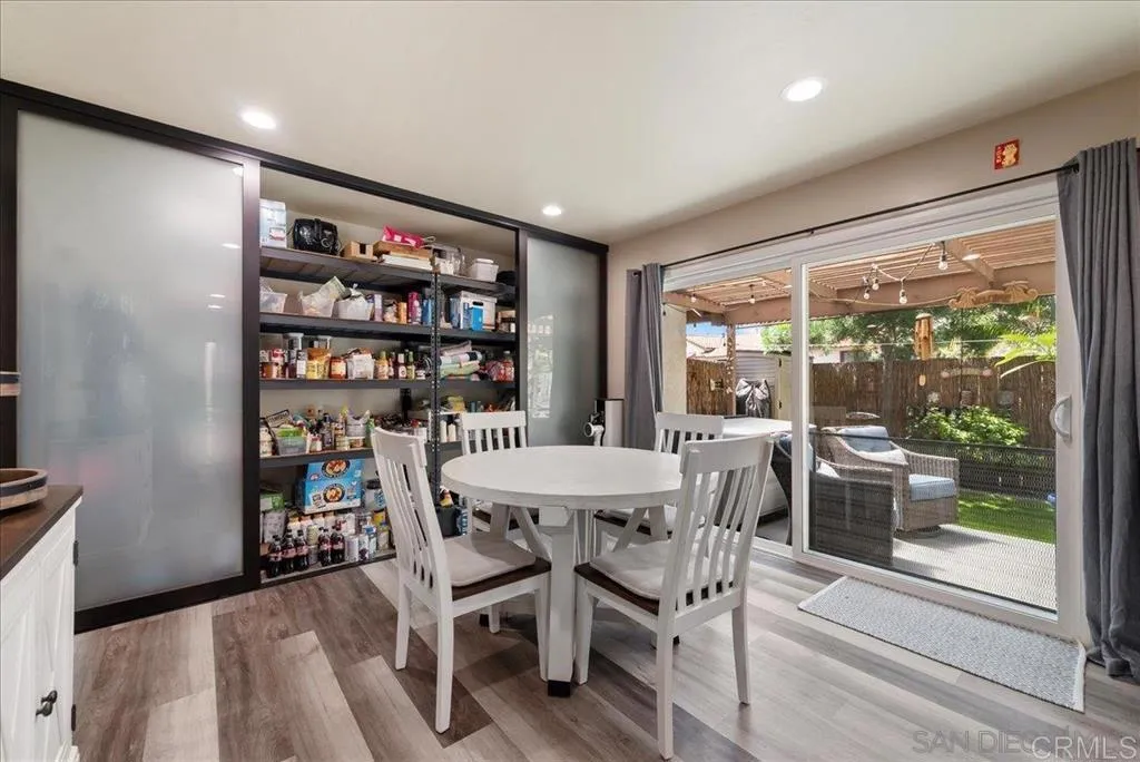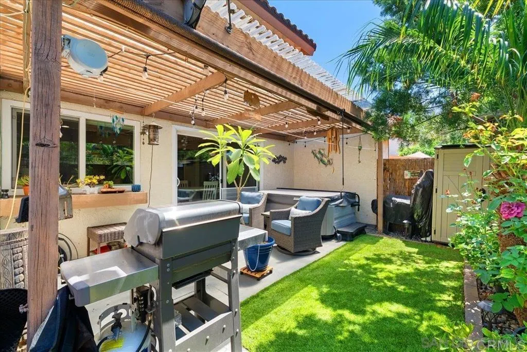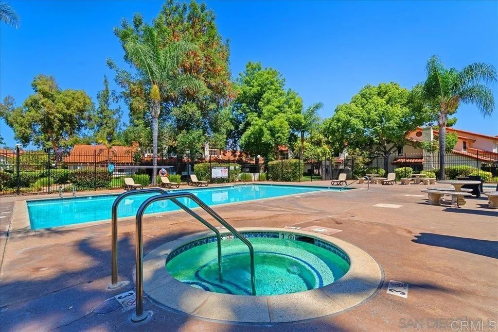 No One Above or Below! Welcome to Felicita Villas, a private, gated community offering all buyers the perfect opportunity to own a beautiful home. This 3-bedroom, 2.5-bathroom townhome is ideally located within the complex and offers 1,664 sq. ft. of spacious living with no neighbors in front, above or below. Step inside to find a bright and open living room with a cozy fireplace with upgraded gas logs, separate dining and family areas, and an upgraded kitchen with sleek countertops and modern cabinetry. Enjoy two private patios, perfect for relaxing or entertaining. The home also includes an indoor laundry room for added convenience and a large primary suite with an en-suite bath and generous closet space. The FHA and VA approval makes this home an excellent opportunity for first-time buyers and military families. The community offers resort-style amenities, including a pool and spa, beautifully maintained landscaping, and secure gated access. Designer Kitchen: Brand-new cabinets, roof, quartz countertops, subway tile backsplash, stainless steel appliances, farm sink, and an oversized pantry with tall glass sliding doors. Washer/dryer/fridge convey. Fresh Upgrades Throughout: New vinyl flooring, all new windows, new doors to every room, French doors, recessed CAN lighting, and ceiling fans in every room. Convenience: Indoor laundry room plus plenty of storage. Comfort All Year: New furnace, newer A/C unit, and a Murphy bed that conveys with the home. Outdoor Living: Private covered patio with new turf, perfect for relaxing or entertaining. Community amenities include a spa