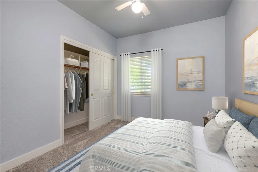 Pristine condition for this wonderful home nestled in the highly sought after Sierra Sunrise 55+ community, offering peace and tranquility!! This beauty has not only the largest lot in Fairfield commons, but also has one of the only 2.5 car garage set ups which is great for workshop area, storage or hobbies!! Located on sweeping corner lot into Ginger lane with outstanding curb appeal and large spacious concrete driveway for ample off street parking. The home has undergone extensive remodeling in last several months with all new LVP flooring in Entry, kitchen, laundry, bathrooms, office room and main living room, along with all new 4 inch base moldings through out the home. All new interior paint top to bottom, new carpeting in primary bedroom and guest bedroom, with 3rd bedroom used as office with LVP flooring, all new window shades, new wired in smoke detectors and more! The main living room offers extra high ceilings with nice downlighting and ceiling fan, completed with fireplace to enhance your cool winter nights. Primary suite offers high ceiling, large walk in closet with built in shelving, and additional closet as well, spacious sink area with separate room with a large shower and water closet. The 2nd bedroom is nice in size with full closet, all new carpeting, paint, molding and blinds. the 3rd bedroom is up front and was used as office room, this is a full size bedroom with full size closet, LVP flooring, new paint and moldings as well. Spacious kitchen with loads of cabinets, ample counter space, and bay window overlooking front entry, along with pass through op