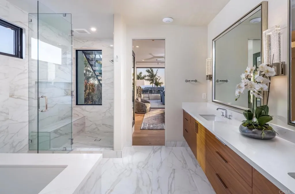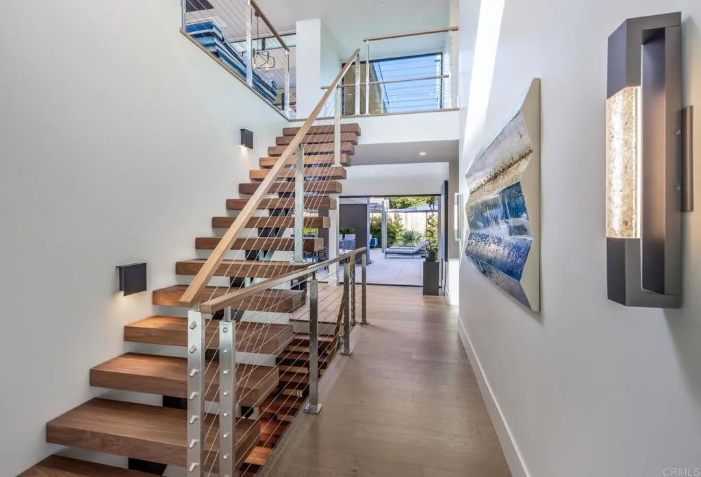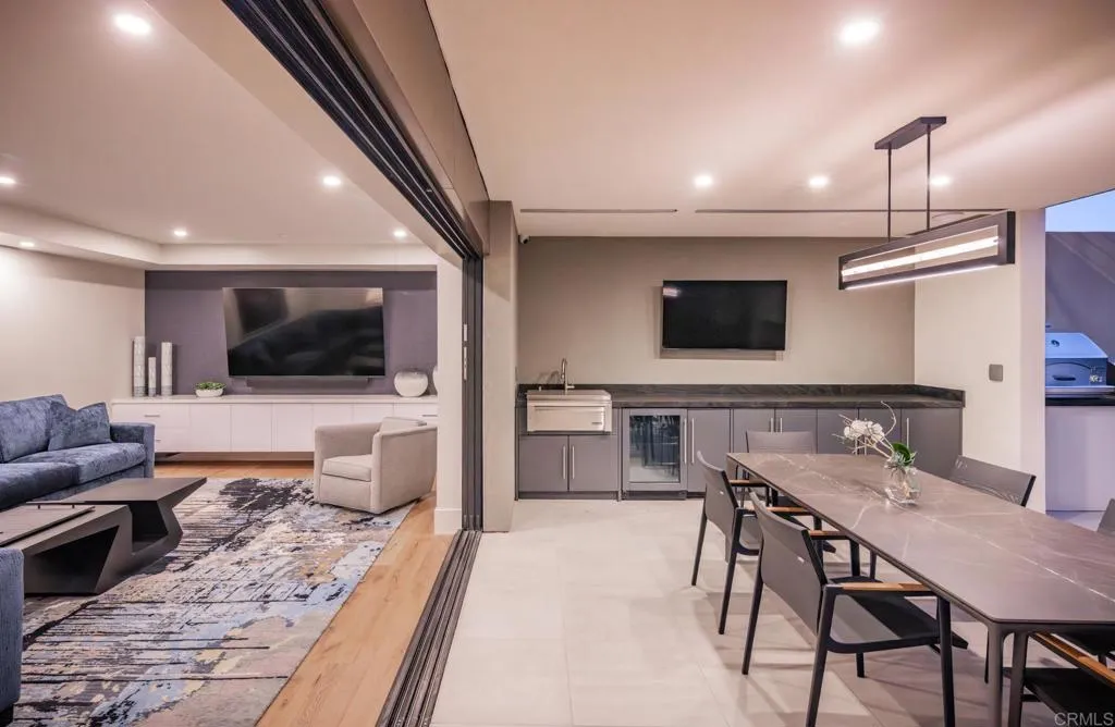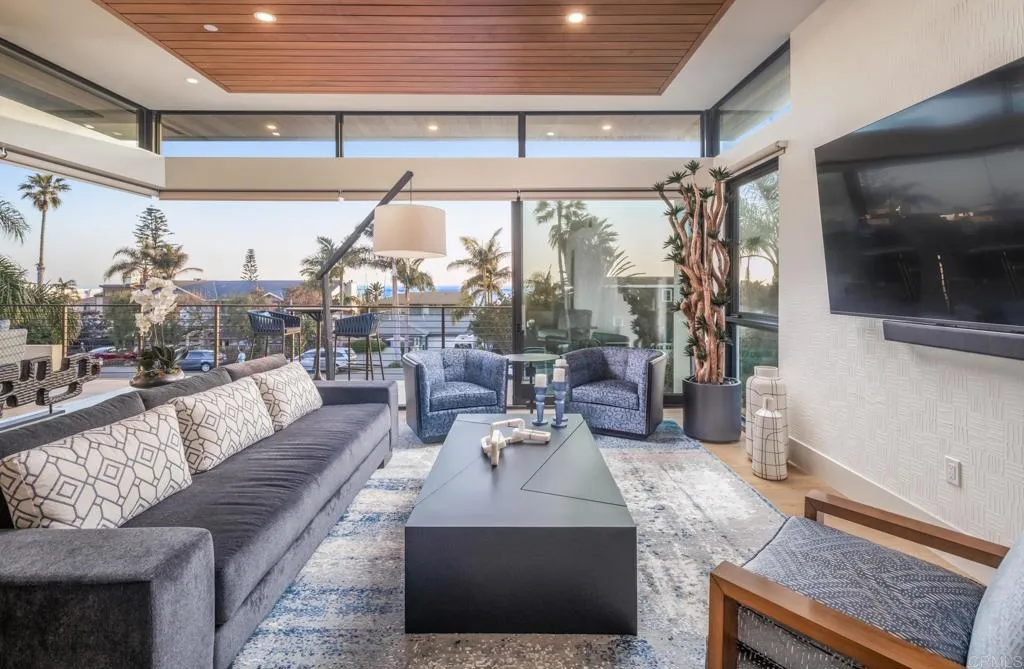 The crown jewel of Terramar, a striking, modern coastal retreat just steps from the sand. From the moment you step inside, the homes elevated architecture and contemporary palette of blues, creams, and grays set the tone for refined beachside living. Every detail speaks of craftsmanship and cutting-edge luxury. This newly constructed 4 bed, 4.5 bath, 3,925 SF masterpiece was imagined as the tallest home on the street, thoughtfully designed across three levels plus a rooftop deck to fully capture panoramic ocean views. The community of Terramar comes with its own private beach access, The Landing, the biggest bonus for the new owner of this magnificent estate, offering an exclusive way to enjoy the coastal lifestyle just steps away. A sleek Savaria Eclipse Residential Elevator connects every floor, offering effortless access from the private garage to the top level, a true blend of convenience and sophistication. The entry level boasts three impeccably designed bedrooms, three full baths, and a family room that opens seamlessly to the backyard, an entertainers dream complete with a custom outdoor kitchen with Lynx pizza oven and 42 grill, bistro island, designer fire pit table, Kannoa Motion Cabana with retractable awning, hot tub, and outdoor shower, all framed by water-conserving landscaping and artistic lighting. The main living space and the heart of the home is located on the top floor to maximize ocean views and includes a showstopping kitchen outfitted with Wolf and Subzero appliances, dual Asko dishwashers, a full-size wine fridge, and striking walnut and white cabin