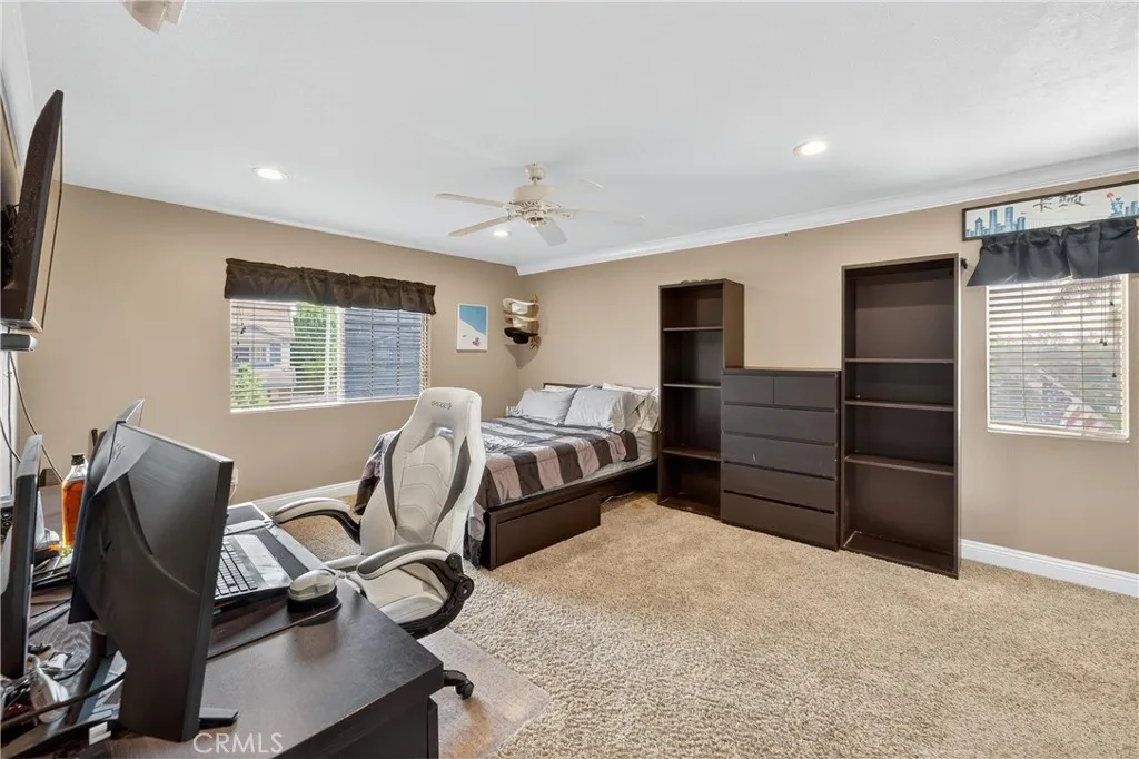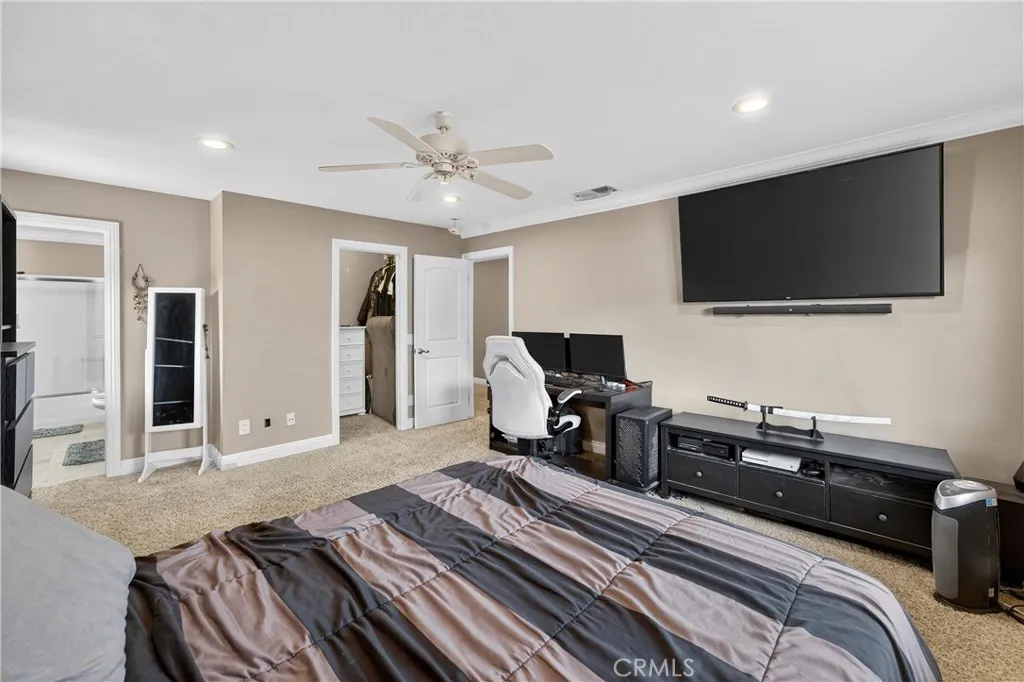 A RARE OPPORTUNITY in the highly sought-after Concord community of West Irvine! Welcome to a home where elegance meets comfort and every detail is designed for convenience and style. Perfectly positioned at the end of a private cul-de-sac, this luxury home sits on an expansive 5,745 sq ft lot and offers 5 bedrooms and 4 baths, including a MAIN FLOOR BEDROOM and bathroom ideal for guests, in-laws, multi-generational living, or a private home office. Step into a spacious and versatile layout, which includes a formal living and dining room that seamlessly blend to offer a refined space for hosting gatherings, along with a separate family room featuring a cozy fireplace with custom stone details for relaxed everyday living. At the heart of the home is the custom chefs kitchen, showcasing a large center island, double ovens, oversized built-in refrigerator and freezer, large walk-in pantry, wine fridge, and a charming custom breakfast nook. Upstairs, enjoy DUAL PRIMARY SUITES, the main suite featuring a double door entry, luxurious bath with a soaking tub, separate glass-enclosed shower, and his and hers dream walk-in closets with abundant storage. Two additional generously sized bedrooms with walk-in closets and an upstairs laundry room complete the ideal second floor. Features and upgrades include travertine flooring, oversized crown molding, dual-pane windows, Nest thermostat, dual AC systems, newer 85-gallon water heater, ample storage cabinets in the garage, alarm and exterior camera system, and solar panels for energy efficiency. This OVERSIZED BACKYARD is truly an enterta
