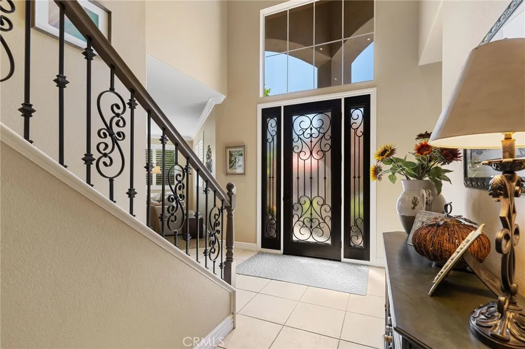 PRICE ADJUSTMENT!! Welcome to the Secured Gated Community of Vintage in Redhawk. This BEAUTIFULLY UPGRADED Home is a private oasis on a stunning cul-de-sac at the highest point of the neighborhood! The home showcases a unique floor plan and is ready for the perfect family! Come through the front gate and into the serene courtyard and enjoy the private sitting area between the single (perfect mancave) and double garages. Inside the stunning custom front door is a formal entry that opens to a grand living room. Crown molding is the perfect accent along with plantation shutters throughout. The family room features a surround sound system, stacked stone wall, media niche with shelves and a raised hearth with gas log fireplace. The remodeled kitchen offers beautiful white cabinets with pull out cabinets, stainless steel appliances, granite slab counters, walk in pantry, and opens to the nook area and family room. One bedroom, with a walk-in closet and full bath will be found on the main floor. Up the stunning remolded staircase, you will find the remaining bedrooms and laundry room. The oversized spacious primary suite has a walk-in closet, granite vanity counters, soaking tub and walk in shower with beautiful frameless glass. The jack and jill style secondary bath also features granite vanity counters. The backyard oasis offers a pebble sheen pool and spa with an in-floor cleaning system, fire pit, built-in BBQ and bar area with extensive use of stacked stone. It is the perfect way to entertain your family and friends. Situated in the highly sought-after Temecula Unified School