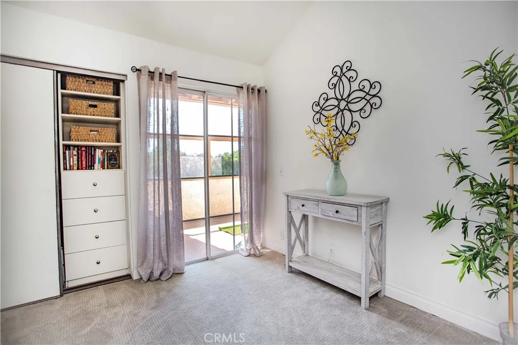 Incredible location just 8 miles from the ocean! A wonderful opportunity to own this remodeled upstairs 2 bedroom condo with expansive views! Beautiful new laminate wood flooring throughout, plantation shutters and a fireplace the main living areas. Spacious kitchen features vaulted ceilings and granite countertops with breakfast bar. Spacious dining area with designer lighting. Primary bedroom features a walk in closet and separate make up vanity. Indoor washer/dryer included. There is a designated covered carport just across from the unit and a community pool, spa and playground along with a large park with plenty of grass and walking trails.