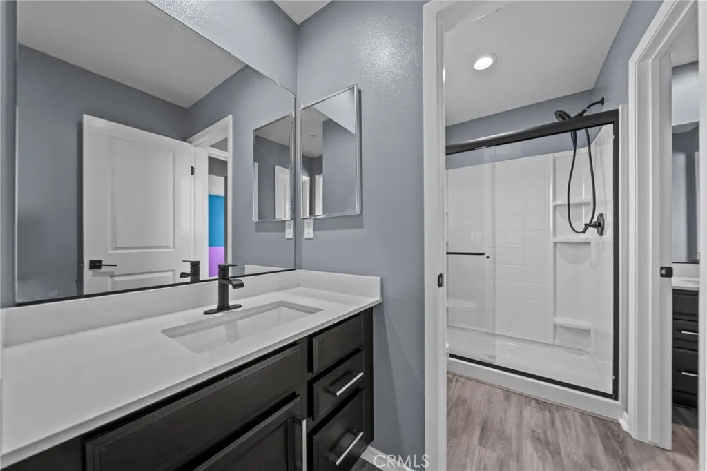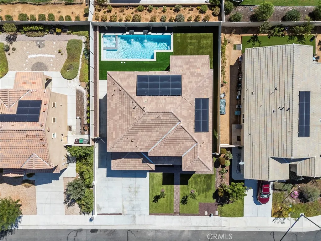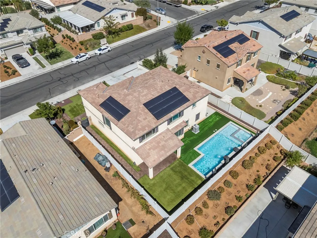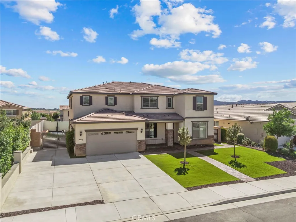 POOL | SPA | IN-LAW SUITE DOWNSTAIRS | 2 MAIN FLOOR BEDROOMS | 2 MAIN FLOOR FULL-BATHROOMS | SOLAR | LOW HOA | UPGRADED KITCHEN | UPGRADED FLOORING | LOFT | TANKLESS WATER HEATER | RV PARKING | You have Arrived! Welcome to this stunning home in the desirable Windsor-Brixton Community of Menifee, offering the perfect blend of spacious living and resort-style amenities. As you enter, the formal dining room sits gracefully to the left, while the right wing of the entry showcases a main-floor bedroom and full bathideal for guests or multi-generational living. Beyond, the open-concept family room seamlessly connects to the chefs kitchen featuring a large island, abundant cabinetry, an upgraded full backsplash, and a generous walk-in pantry. Just past the kitchen, another bedroom and full bath provide additional convenience. Upstairs, youll find a massive loft, four more bedrooms, and three full bathrooms. Two secondary bedrooms share a jack-and-jill bath, while the luxurious primary suite boasts peek-a-boo mountain views and a spa-inspired ensuite with an enormous walk-in shower. Throughout the home, upgrades abound including vinyl plank flooring, custom lighting and ceiling fans, modern door and bath hardware, and ample storage. Step outside to your private oasis designed for entertaining and relaxation. Enjoy a custom pool and spa with dual fire pit water fountains, Pentair salt system, and custom pool-grade turf decking. The low-maintenance landscaping includes Newtechwood Spanish Walnut decking, natural grade turf throughout, Bay leaf trees, and window planter boxes. Additio