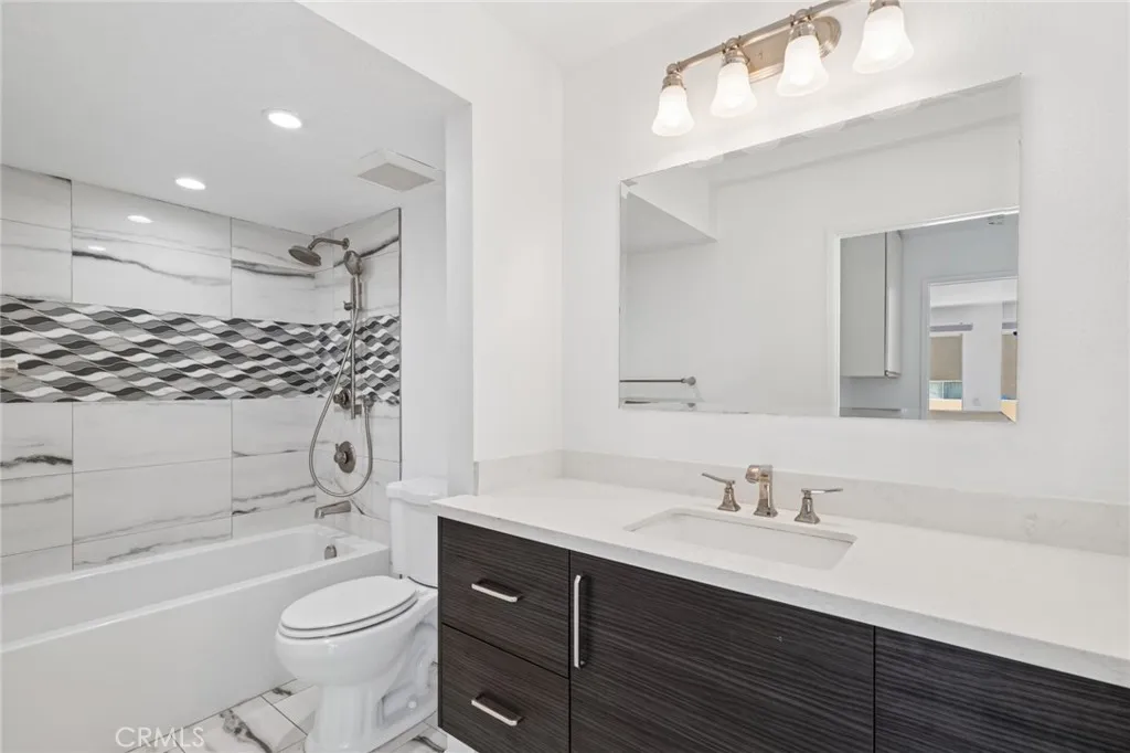 Nestled in the sought-after community of Rainbow Ridge, this updated 2-bedroom, 2-bathroom residence combines comfort, style, and convenience. A dramatic entry with soaring ceilings and expansive windows fills the interiors with natural light, enhancing the sense of space. The open-concept living area features a tiled fireplace and flows seamlessly to a large private balcony, perfect for both relaxing and entertaining. The main-floor primary suite offers a spacious walk-in closet and a well-appointed full bath. Upstairs, the secondary bedroom provides privacy with its own en-suite bath and closet. The kitchen is designed with efficiency and function, opening to the dining and living areas for a connected lifestyle. Recent upgrades add to the homes appeal, including luxury plank flooring, remodeled bathrooms with modern finishes, motorized window shades, a new water heater, and a complete plumbing re-pipe in 2025. Thoughtful details throughout reflect quality and attention to design. Residents of Rainbow Ridge enjoy tree-lined surroundings and access to Lake Mission Viejo membership, which includes lakeside activities, picnic areas, summer concerts, and movie nights. The community is also ideally located near shopping, dining, entertainment, and major freeways, making it a perfect blend of comfort and convenience.