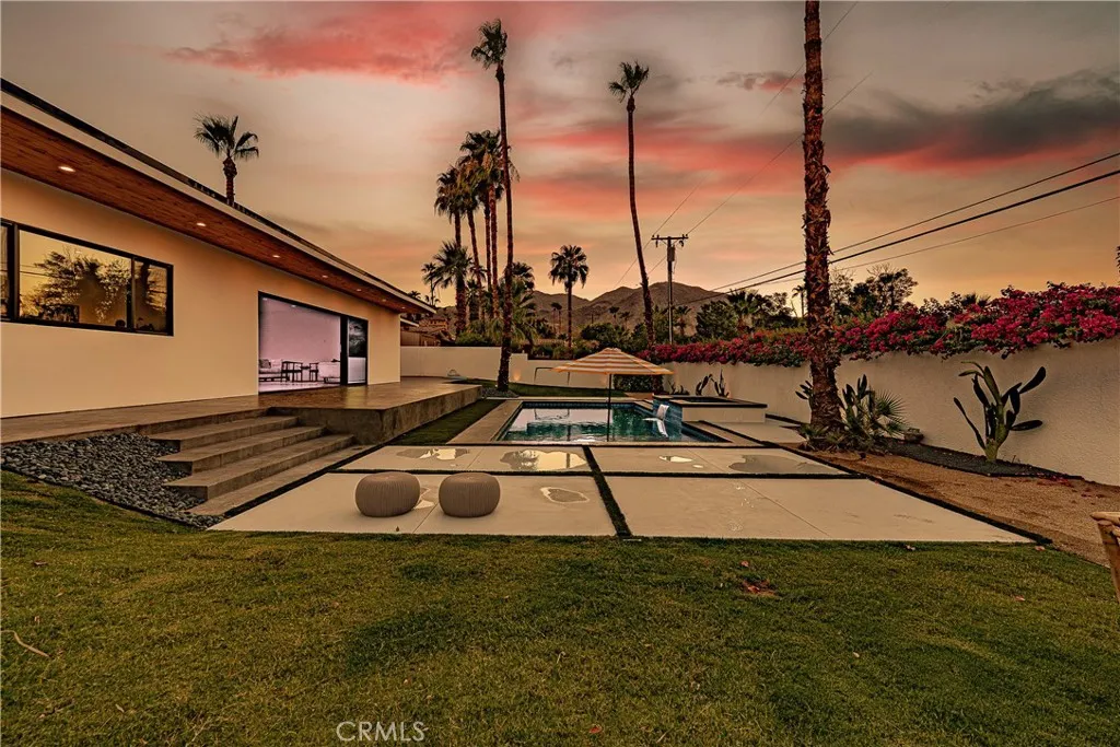 Welcome to South Palm Desert, where style meets comfort just minutes from El Paseos dining, shopping, and entertainment. This home has been completely reimagined with thoughtful upgrades inside and out, offering the perfect balance of modern convenience and resort-style living. Step inside to an open, airy layout with brand-new insulation, drywall, and polished concrete floors. The new kitchen is the heart of the home, designed with custom cabinetry and a spacious island, while new bathrooms feature sleek walk-in showers and fresh finishes. Expansive windows and entertainers sliding glass doors bring in natural light and open directly to the backyard, creating seamless indoor-outdoor living. Every major system has been replaced, including all-new plumbing, sewer line, dual 4-ton HVAC units, and a 400-amp underground electrical panel with upgraded power lines. Additional improvements include new windows, doors, insulation, and stucco, giving this home a fresh, contemporary feel throughout. Outside, the backyard has been transformed into a private retreat. Enjoy a brand-new saltwater pool and spa with app-based controls, an outdoor shower, new pool system, and professional landscaping with sprinkler and lighting systems. A Tesla charger, new concrete hardscape, and smooth stucco exterior add both function and style. Every detail of this home, from the upgraded systems to the private backyard oasis, has been thoughtfully designed to create a seamless blend of modern comfort and effortless desert living in one of Palm Deserts most desirable neighborhoods.
