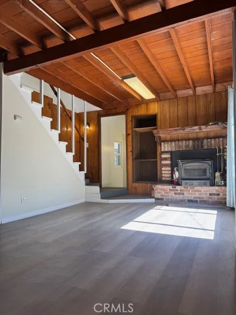 Enjoy the serenity of life in the Valley of Enchantment. Generous parking for three cars out front. The main level entry impresses with beautiful beamed ceilings and inviting fireplace. There are bedrooms upstairs and a potential master bedroom downstairs or you can divide lower level to make extra income. A huge (14x30) deck in the back yard allows enjoying beautiful views in comfort and safety. If four bedrooms isn't enough space to put all your stuff, there are two sheds out back. Buyer to confirm measurements, features, and usability of all facets of this property.