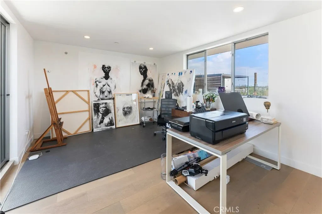 Perfectly situated near the Culver City Arts District and just one block from the iconic Helms Bakery, this collection of Jay Vanos, AIAdesigned homes offers a unique opportunity to live and work in the heart of vibrant city life. Thoughtfully crafted with floor-to-ceiling glass walls, soaring 12-foot ceilings, and a luminous open floor plan, every detail reflects modern sophistication. Designer finishes include imported fixtures, custom materials, wide-plank oak flooring, and private balconies and roof decks with sweeping city viewsideal for embracing the SoCal lifestyle. The gourmet kitchen showcases custom millwork, stainless steel appliances, and a spacious island perfect for entertaining. Two generously sized bedrooms include a primary suite with spa-inspired bath and walk-in closet. A versatile top-floor bonus room with a full bath and expansive roof deck creates the perfect third bedroom, office, or den, complete with views of Downtown and the Hollywood Sign. The home is finished with a private entry and two-car garage, offering both convenience and privacy.