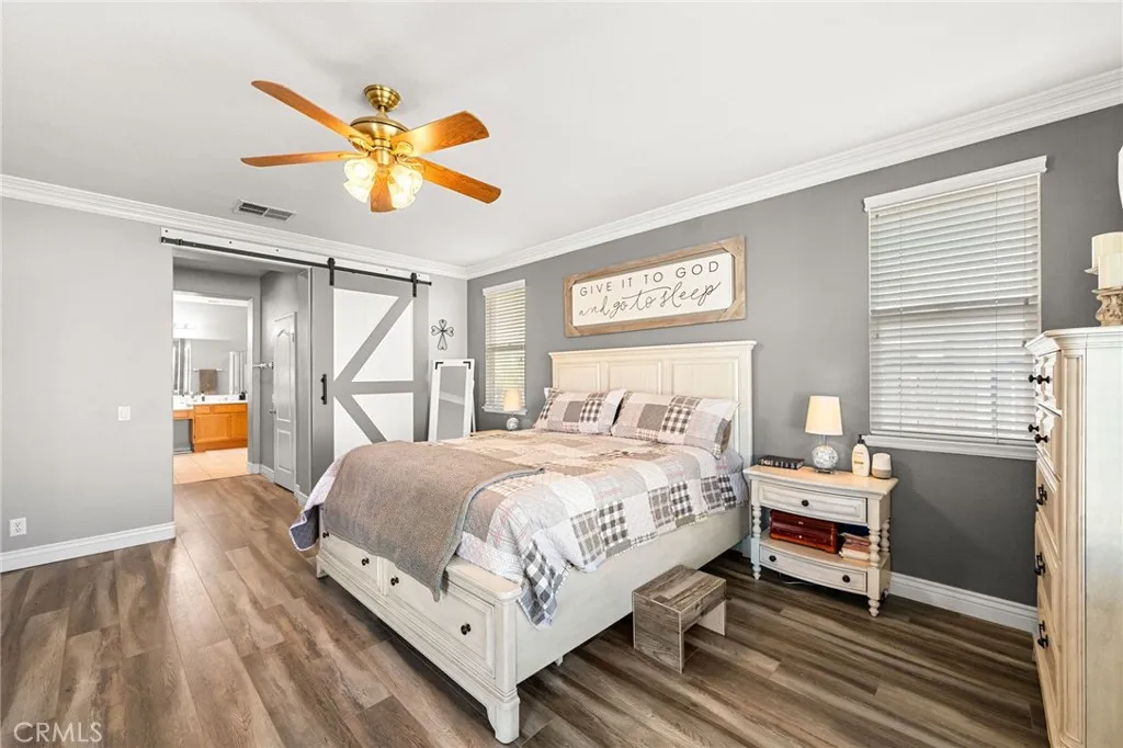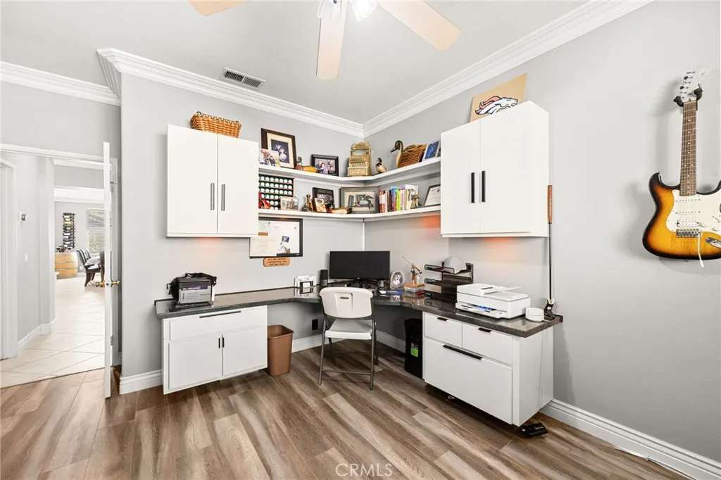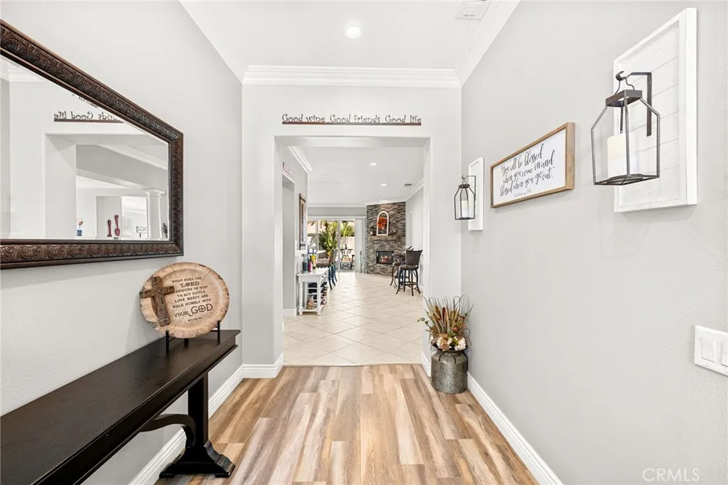 Welcome to 28602 Windridge Drive a stunning single-story home designed for entertaining and everyday comfort! Offering 2,773 square feet of beautifully designed living space, this 4-bedroom, 3-bathroom residence sits on a desirable corner lot and showcases impressive curb appeal with its lush artificial turf front yard for a clean, low-maintenance look year-round. Inside, youll find an open and inviting floorplan that seamlessly connects each living space. The formal living room has been transformed into a stylish bar, creating the perfect centerpiece for gatherings with direct access to the formal dining room, family room, kitchen, primary suite, and backyard. A stone fireplace adds warmth and charm to the main living area, creating an ideal space to relax or entertain. The chefs kitchen is open to the family room and features a large central island, white cabinetry, custom countertops, a subway tile backsplash, and stainless-steel appliances. With multiple access points to the backyard and formal dining area, this layout makes hosting family and friends effortless. The primary suite offers a peaceful retreat with LVP flooring, backyard access, a sliding barn door to the ensuite bath, and a mini-split HVAC system for personalized comfort. Three additional bedrooms complete the hometwo connected by a Jack & Jill bath and a third currently set up as an office with a built-in desk, adjacent to the guest bathroom. Step outside to enjoy the private backyard featuring a covered patio, artificial turf, large concrete entertaining area, above-ground spa, garden, BBQ space, and st