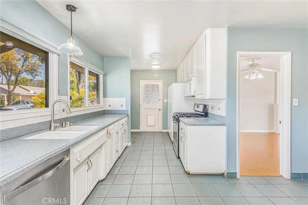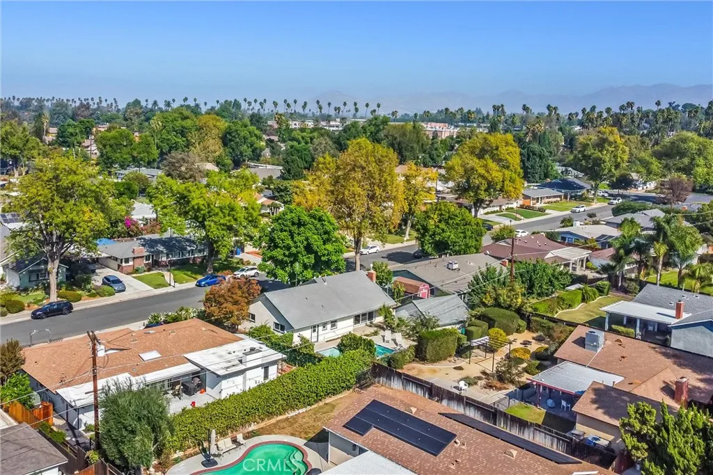 Welcome to 2838 Shenandoah Rd, a charming mid-century pool home tucked in the highly sought-after Cowboy Streets neighborhood of Riverside. Set on a peaceful, tree-lined street with award-winning schools nearby, this single-story residence offers timeless character, modern comfort, and an inviting layout designed for easy indoor-outdoor living. Step through the storybook front yard, where mature landscaping, fruit trees, and succulents frame a brick-lined path leading to the covered entry. Inside, the spacious living room welcomes you with warm natural light, a classic brick fireplace, and large sliding doors that open to the backyard. The adjoining dining nook flows into a bright, oversized kitchen featuring custom cabinetry, abundant storage, vintage tile backsplash, and stainless-steel appliances. A convenient indoor laundry area sits just off the kitchen. Down the hall, two generous bedrooms share a full vintage-style bath, while the private primary suite offers its own en-suite bath and peaceful views of the backyard greenery. Ceiling fans, dual-pane windows, and thoughtful design details enhance the homes comfort year-round. Step outside to your own backyard retreat, complete with a sparkling pool and spa, raised garden beds, and lush mature landscaping that provides both beauty and privacy. The extended driveway and detached garage offer ample parking and flexibility for cars, toys, or workshop space. All this in a prime location near Victoria Elementary, Gage Middle, and Poly High, with easy access to the 91 Freeway, CBU, RCC, UCR, and Riversides thriving cultural s