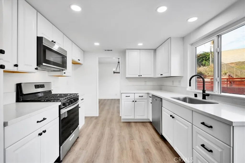 Stunning Fully Remodeled 4 Bed / 3 Bath Home with Pool in Cerritos Welcome to this exquisite, newly remodeled residence in the heart of Cerritos! Boasting 4 spacious bedrooms and 3 baths, this home blends modern luxury with thoughtful design and comfort. Step inside to discover an open-concept layout featuring a brand-new gourmet kitchen with quartz countertops, sleek cabinetry, stainless steel appliances, ideal for entertaining. The living spaces are adorned with high-end finishes: engineered hardwood flooring, recessed LED lighting, fresh designer paint, and upgraded baseboards and trim. The master suite is serene and luxurious, offering a spa-style bath with dual vanities, a walk-in shower and two full closets and a fireplace for cozy nights. Additional bedrooms are generous in size and share beautifully remodeled bathrooms with modern fixtures. Outside, the backyard is your private retreat. Dive into the shimmering pool surrounded by new decking. Theres space for lounging, barbecuing, or relaxing under mature landscaping, providing both privacy and curb appeal. Additional features include a large 3-car garage, central heating and air (HVAC), modern plumbing and electrical systems, plus energy-efficient touches throughout. Situated in a desirable Cerritos neighborhood, youre conveniently close to award-winning schools, shopping, dining, parks, and freeways. This home is truly turnkeymove in, enjoy, and make memories for years to come.