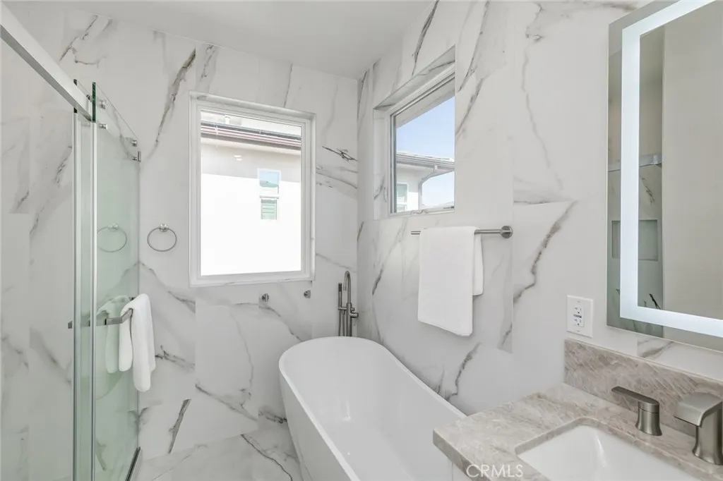 5 BED + 2 Main Master Room (down and up)+ LOFT | GUARD-GATED ALTAIR Stunning two-story home in the prestigious 24-hour guard-gated Altair community. Features 4 bedrooms, 4.5 baths, a spacious loft, and 2 Main Mater Room ideal for a home office and loft . The gourmet kitchen boasts a large island, built-in refrigerator, 6-burner cooktop, and ample cabinets, opening to the dining and living areas for seamless entertaining. First-floor bedroom with en-suite bath is perfect for guests. Upstairs includes a loft, laundry room, two secondary bedrooms, and a luxurious primary suite with dual walk-in closets, soaking tub, and separate shower. Designer upgrades include hardwood floors, crown molding, and plantation shutters. Professionally landscaped backyard provides a private space for outdoor gatherings. Altair offers resort-style amenities including pools, spas, parks, clubhouses, tennis courts, and playgrounds. Conveniently located near Great Park, Woodbury, Irvine Spectrum, shopping, dining, John Wayne Airport, and award-winning Irvine schools.