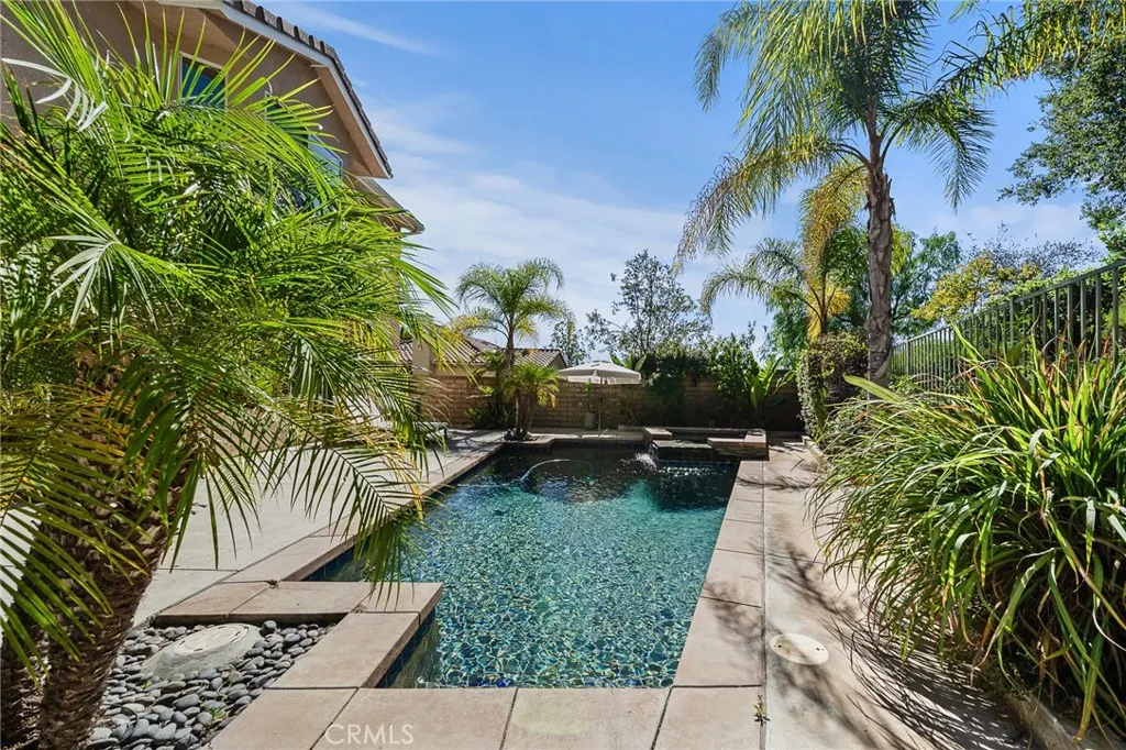 MAJOR $40K PRICE IMPROVEMENT!! Welcome to this lovingly maintained 4-bedroom, 3-bathroom home in Pacific Hills, one of Santa Clarita's most desirable communities. Featuring nearly 2,400 square feet of comfortable living space, this home blends open-concept design with distinct, well-defined rooms ideal for both entertaining and everyday living. At the heart of the home is a beautiful, crisp white kitchen showcasing newer cabinets, new sleek and durable quartz countertops, a spacious island, and newer stainless steel appliances including a stove, microwave, and dishwasher. The kitchen opens to a bright and inviting living room, creating a seamless flow while maintaining each spaces individual charm. For convenience, the home includes a full bedroom and bathroom downstairs, perfect for guests or multi-generational living. Upstairs, the primary suite impresses with soaring ceilings, a generous walk-in closet, and a spacious en-suite bathroom designed for relaxation. An additional loft offers flexible space for a home office, playroom, or media area. Step outside to your private backyard oasis, complete with a sparkling pool, new pool pump, and elevated deck perfect for outdoor dining or soaking in the sunshine. Beautiful landscaping features mature plum and olive trees, adding character and tranquility to the space. Thoughtful upgrades include a whole-house PEX repipe, an updated upstairs guest bath, and other modern touches throughout. Enjoy peace of mind with low HOA dues, no Mello-Roos, and access to an exclusive community park and top-rated schools. This move-in-ready ho