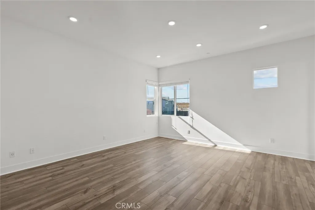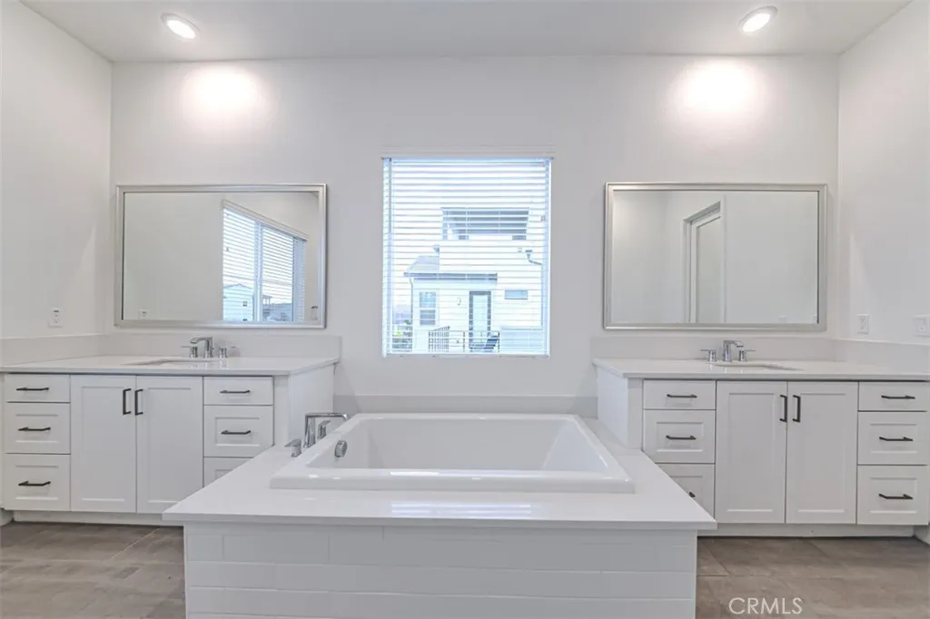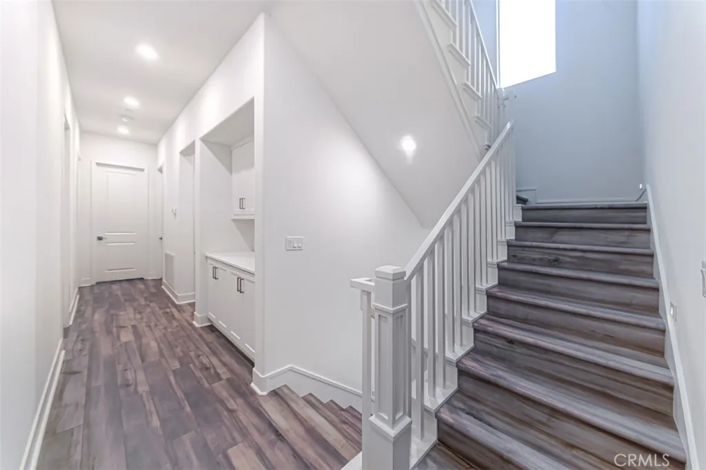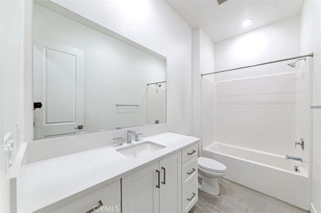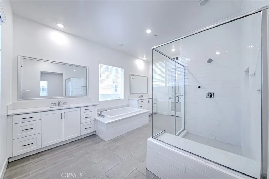 Welcome to modern luxury in the heart of Five Point Valencia. This stunning Lennar Rosemist Plan 4, the largest and most desirable model in the community, was completed a couple years ago and offers the perfect blend of sophistication, comfort, and style. With five bedrooms, four and a half bathrooms, and three spacious levels, this home showcases impeccable design and attention to detail. The main floor features an open-concept, dining area, and chefs kitchen with a large quartz-topped island, professional-grade stainless steel appliances, and a six-burner cooktop with designer hood. Ten-foot ceilings and wood-like LVP flooring create a sense of warmth and grandeur throughout. A guest bedroom with a full bath on the first floor provides flexibility for visitors, extended family, or a home office. Upstairs, the luxurious primary suite offers a peaceful retreat with a spacious walk-in closet, dual vanities, soaking tub, and separate shower, while three additional bedrooms, two more baths, and a laundry room complete the second floor. The top level is a versatile bonus/loft area featuring its own bathroom, wine fridge, counter space, and a covered terrace with panoramic views of the Santa Clarita Valleyperfect for a game room, gym, or lounge. Extra storage in the 2 car garage with EV charging station. Enjoy year-round outdoor living with a gated backyard and covered patio ideal for dining or relaxing. Located within the vibrant Five Point community, residents have access to world-class amenities including three pools, a spa, BBQ areas, playgrounds, scenic greenbelts, and a re