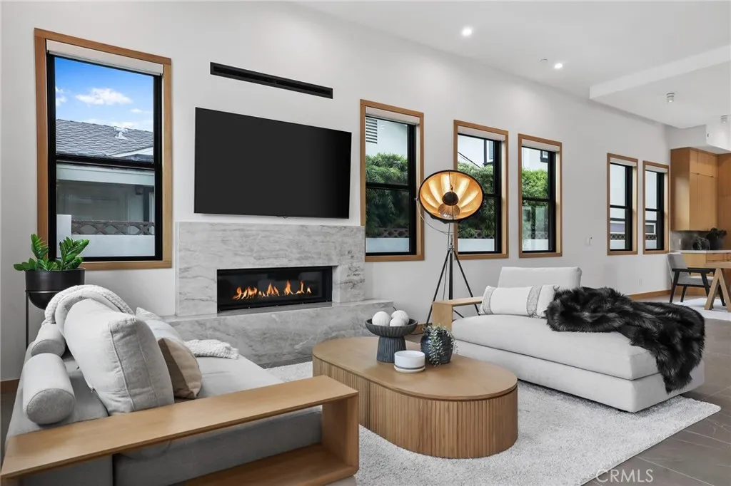 Newly built in 2025, this extraordinary modern residence is ideally located in the prestigious Lake Park neighborhood of Huntington Beachaffectionately known as Surf City. Just moments from the sand, the iconic pier, Pacific City, and a vibrant selection of restaurants, shops, and events (including the world-famous air show), this home offers the ultimate coastal lifestyle. A dramatic 5' pivot entry door and soaring 12' volume ceilings set the tone for the elegant, light-filled interior. The floor plan features four bedrooms, all ensuite, including two primary suitesone conveniently located on the ground floor and a second upstairs. The upstairs primary suite is a luxurious retreat, showcasing a spa-inspired bathroom with an exquisite Italian marble shower, creating a serene and sophisticated escape. The gourmet kitchen is the heart of the home, equipped with a 6-burner Wolf stove, Sub-Zero refrigeration, a walk-in pantry, and a stunning Taj Mahal quartzite island perfect for gathering and entertaining. Designer finishes abound throughout, including Restoration Hardware lighting, Porcelanosa tile, Toto toilets, and Serena & Lily wallpaper. A striking marble staircase leads to a spacious upstairs family/bonus room. Additional features include dual air conditioners for year-round comfort, an inside laundry room, and a 3-car garage with room for lifts. Blending modern luxury with timeless coastal elegance, this Lake Park residence captures the very best of Surf City living.