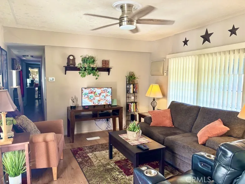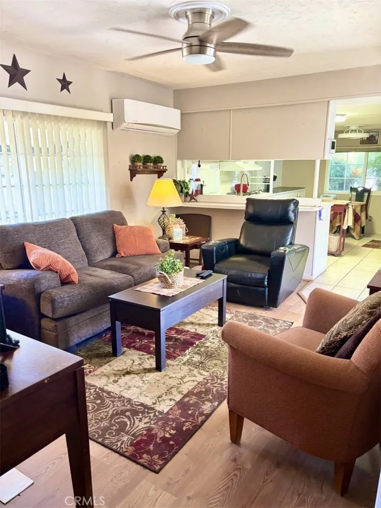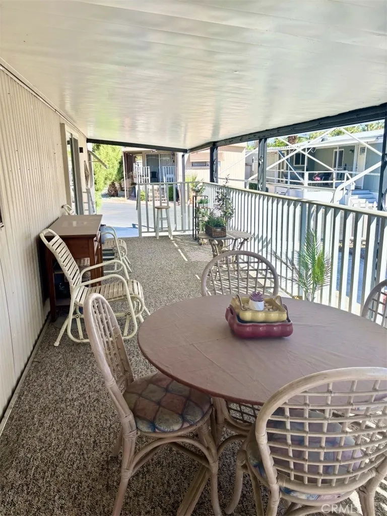 Welcome to TRAMVIEW Mobile Home Park! This turnkey furnished (with a few exceptions) 2-bedroom, 1-bath home offers comfort, space, and convenience in a desirable Palm Springs location. Step inside to a spacious floor plan featuring raised ceilings in the living area, creating an open and airy feel. The eat-in kitchen offers abundant storage and comes equipped with an oven/range, refrigerator, dishwasher, and microwave. The living room opens directly onto a large covered patio, perfect for relaxing or entertaining. The second bedroom, currently used as an office/storage area, includes a stackable laundry unit for added convenience. The bathroom features a tub/shower combo and plenty of space. The primary bedroom boasts a wall of closets and large windows that fill the room with natural light. Recent updates include a newer foam roof (approximately 4 years old), newer HVAC system, and a newer swamp cooler. Residents of Tramview Mobile Home Park enjoy access to a large swimming pool and spa, a clubhouse with entertainment areas, two kitchens, a piano, pool table, and card tables for owner use. Ideally located near Target, Trader Joes, and just a short drive from Palm Springs International Airport and downtown Palm Springs.