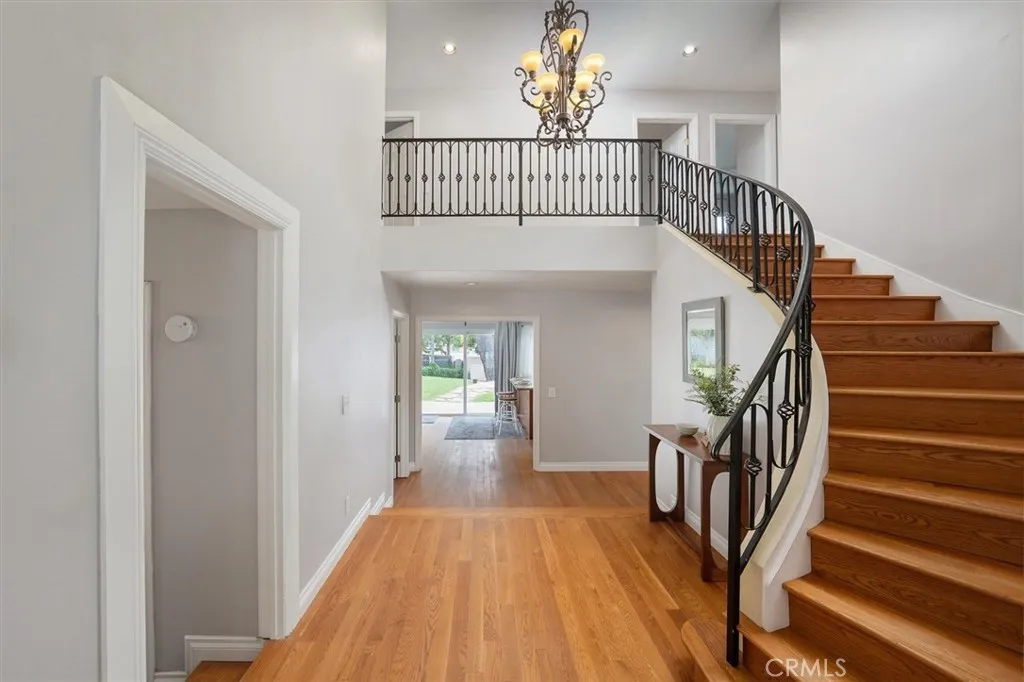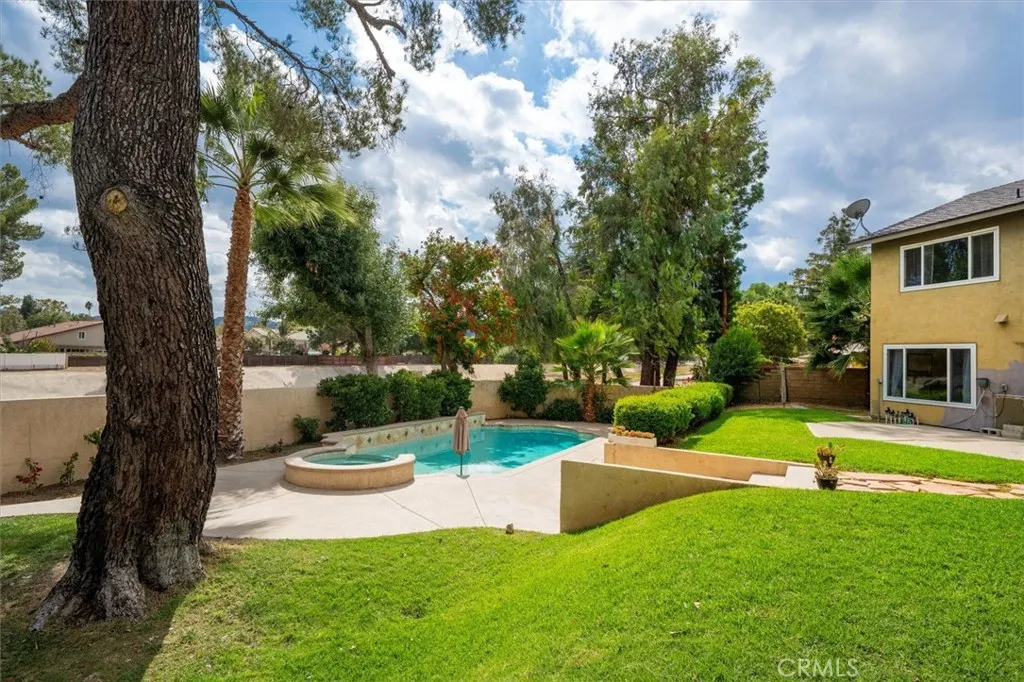 Back on the market at no fault of the home or sellers! End-of-cul-de-sac home with large backyard including a pool, spa, and no rear neighbors in the sought-after Old Orchard 2 neighborhood of Valencia. This five-bedroom, three-bathroom home sits on a bonus-size lot offering added privacy and outdoor living space. The backyard features a sparkling pool and spa surrounded by mature landscape and open sky views. Inside, the updated kitchen includes modern cabinetry, stone counters, and stainless steel appliances. There are two fireplaces, one in the family room and one in the living room, adding warmth and character to the floor plan. A downstairs bedroom and bathroom with walk-in shower provide flexibility for guests or multi-generational living. The Old Orchard II HOA offers a clubhouse, pool, spa, playground, and a neighborhood swim team, all connected by the extensive Valencia Paseo system with trails and bridges throughout the area. Residents enjoy nearby Old Orchard Park and convenient access to local favorites including Eat Real Caf, Honu Coffee, The Social, Bricks, and restaurants in Old Town Newhall. This location is also near Old Orchard Elementary, Placerita Junior High, and Hart High School. Easy freeway access makes this an ideal spot for commuters while still being close to Valencias shops, parks, and recreation options. Enjoy the combination of space, privacy, and community amenities in one of Valencias most established neighborhoods. NO mello roos!