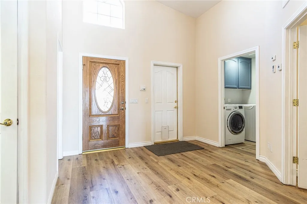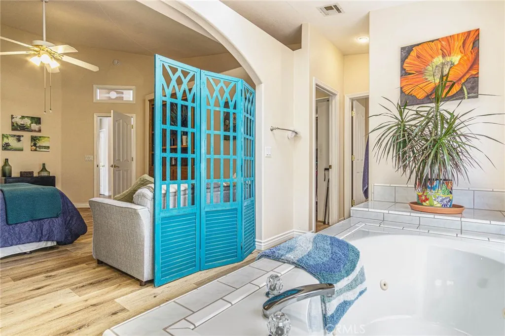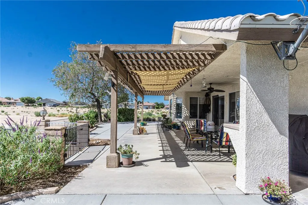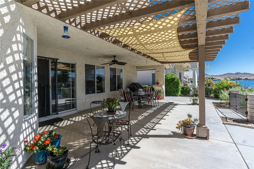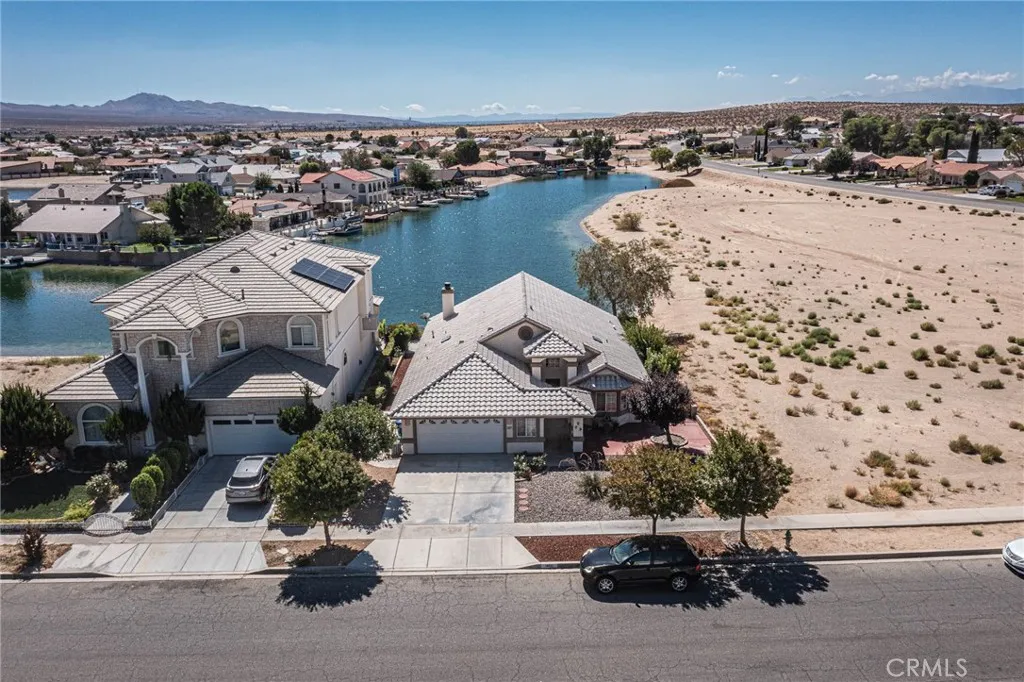 Welcome to waterfront living at its finest! This beautifully maintained 3-bedroom, 2-bath home in Helendale features an open floor plan perfect for modern living. The spacious family room boasts a cozy pellet stove and stylish flooring that flows throughout the home. The kitchen is a chefs delight with granite countertops, pendant lighting, a walk-in pantry, and a functional layout ideal for entertaining. Retreat to the primary suite featuring a luxurious garden tub, dual sinks, and ample closet space. Enjoy the convenience of an indoor laundry room, a central vacuum system, and a water softener. The garage includes a built-in workbench and plenty of storage. Step outside to your own private oasisan expansive patio area surrounded by fruit trees and direct access to the water with your own private dock. Whether you're enjoying morning coffee by the lake or hosting gatherings under the stars, this home offers it all. Dont miss this rare opportunity to live on the water in the desirable Silver Lakes community!