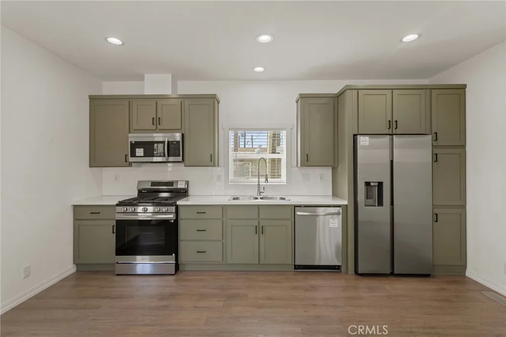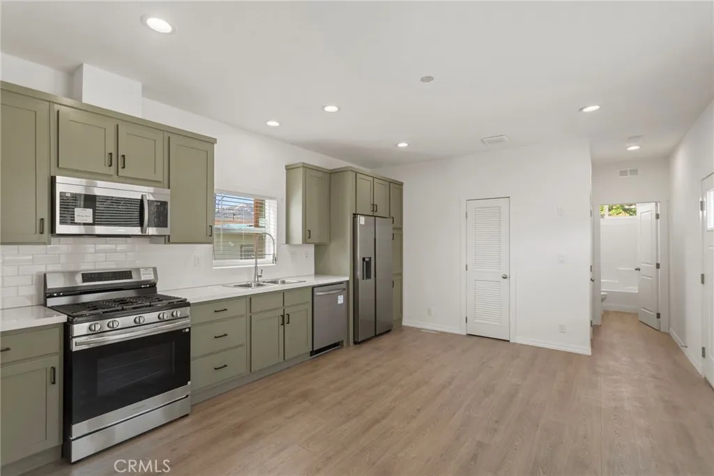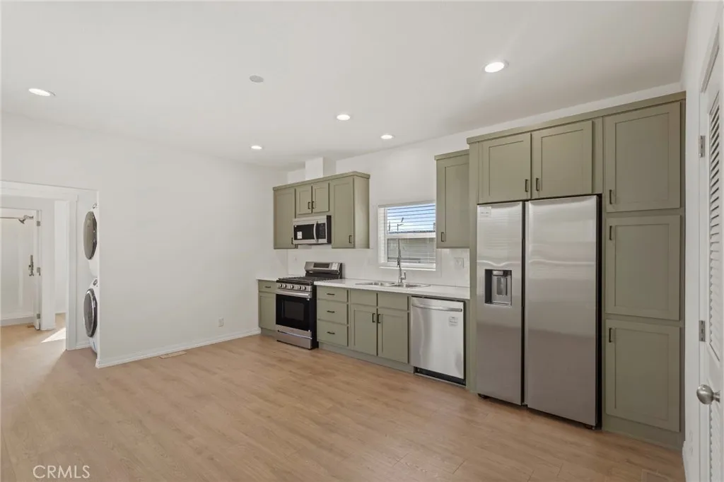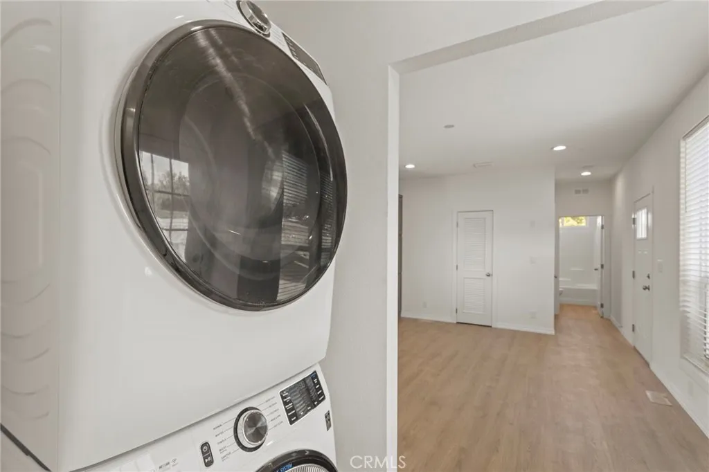Located in the city of Jurupa Valley, this 2025 Clayton home is a two-bedroom and two-bathroom with 9' sidewalls and flat ceilings. The home features laminate flooring and recessed can lighting throughout, and the rooms are prepped for ceiling fans. The kitchen has stainless steel appliances, a stackable washer and dryer, quartz countertops, and a ceramic white tile backsplash. This is a must-see; do not miss this opportunity.