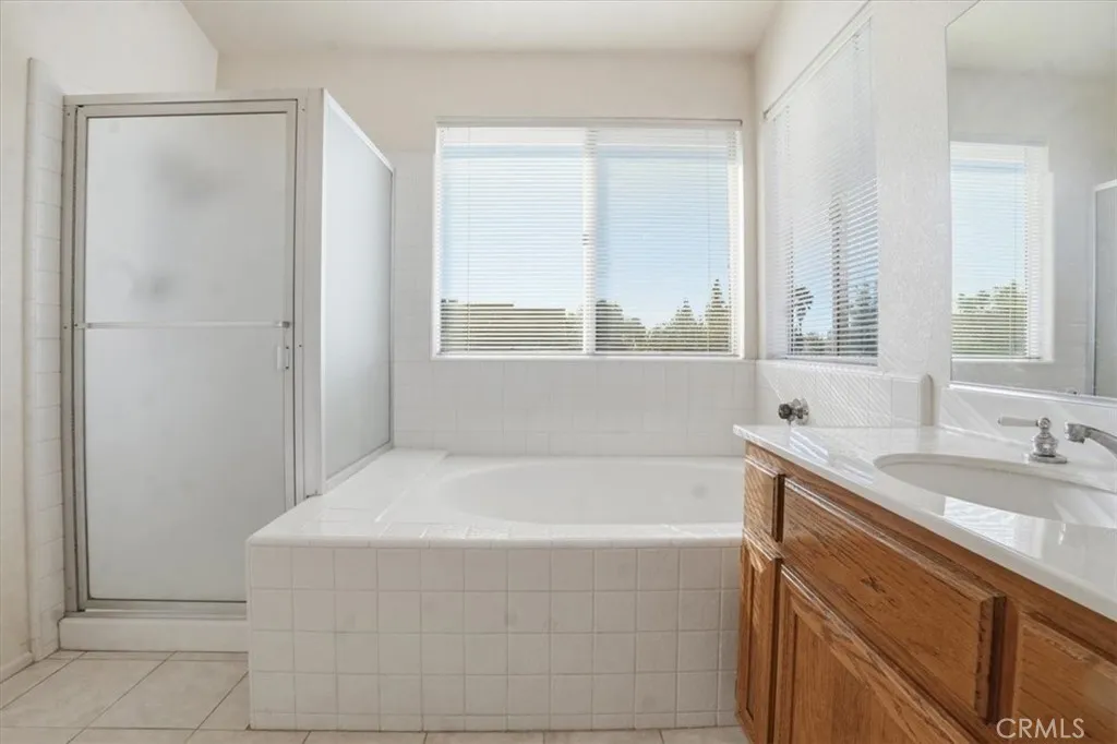 Enjoy panoramic mountain views from this exceptional residence in the prestigious Canyon Crest Hills community a tranquil cul-de-sac retreat designed for those who seek both elegance and comfort. Offering 2,658 sq. ft. of living space on an expansive 11,761 sq. ft. lot, this home features a large 3-car garage (approx. 588 sq. ft.) and an oversized front yard with potential RV parking, making it as practical as it is luxurious.From the moment you enter through the grand double doors, youre greeted by soaring vaulted ceilings and expansive picture windows that fill the interiors with warm, natural lightcreating an ambiance of sophistication and serenity. The formal living room with brick fireplace and adjacent dining room set the stage for elegant entertaining, while the open-concept family room with a second fireplace offers the perfect space for relaxed everyday living. The gourmet kitchen features tile countertops, generous cabinetry, and a charming breakfast nook overlooking the lush backyardperfect for peaceful mornings or lively gatherings. Lustrous luxury vinyl flooring flows throughout, enhancing the homes modern appeal. A highly desirable downstairs ensuite bedroom provides comfort and flexibility for guests or multi-generational living, complemented by a separate powder room. OUTDOOR SANCTUARY: The exterior has been lavishly upgraded with premium artificial turf and designer Rocks cape in both the front and back yards delivering a water-efficient yet visually stunning landscape. Beyond the finished areas lies wide-open space, offering endless potential to create y
