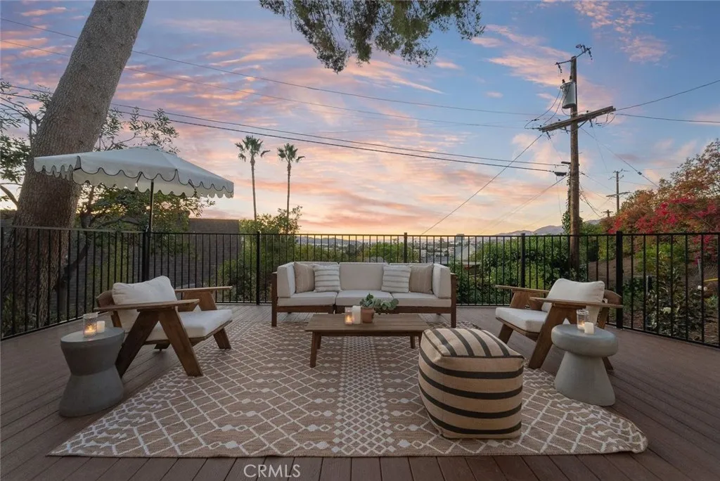 Views, Views, Views! Perched in Glendales coveted Adams Hill, 1117 Oberlin Drive is a 3,000 sqft fully reimagined organic modern home with spectacular views, timeless design, and refined craftsmanship. Flooded with natural light through the panoramic windows, the house features 3 large balconies with stunning views and offers a 220 sqft additional bonus recreation room with endless flexibility gym, playroom, or home theatre. Ideally situated near Atwater Village, Silver Lake, and downtown Glendale, this home offers unbeatable access to some of L.A.s most vibrant restaurants, bars, and entertainment hotspotsall just minutes away. The chefs kitchen anchors the home with brand new stainless steel appliances, including a 48-inch double-oven range with 8 burners and griddle, a 47-inch refrigerator, a wine fridge, a dishwasher, and new custom cabinetry. The massive 12-foot island with waterfall stone finish offers abundant storage and seating, ideal for both everyday use and entertaining. A large formal dining room flows gracefully down to the living room, where high ceilings, a fireplace, and expansive windows frame panoramic views of Adams Hill. The living room opens to a spacious balcony, seamlessly blending indoor and outdoor living. The primary suite offers a fireplace, walk-in closet, and private balcony, with a spa-like bath featuring dual vanities, a soaking tub, and a walk-in shower. Two guest bedrooms capture stunning city views, one with direct access to a private patio and to the backyard through sliding doors, while a fourth en-suite bedroom provides perfect privacy
