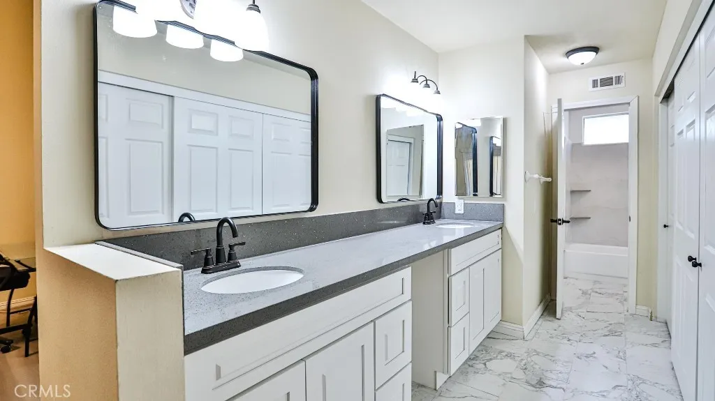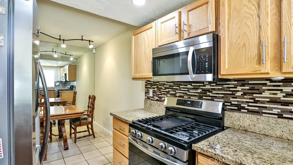 Price improvement! Move right in to this beautiful turnkey townhome located in the desirable gated Fox Glen Community. This bright and spacious 2-bedroom, 1.5-bath home offers 1,147 sq. ft. of comfortable living space. As you enter, youll love the high vaulted ceilings and open floor plan that make the living room feel warm and inviting. Enjoy cozy nights by the fireplace or meals at your dining room that opens to an upgraded kitchen featuring classic cabinets, granite countertops, and upgraded stainless steel appliances. Downstairs also includes a remodeled guest half bath for convenience. Upstairs, youll find two bedrooms connected by a dual access bath with a newly tiled tub, updated fixtures, and new dual vanities great for busy mornings. One bedroom offers a walk-in closet with its own private vanity. Additional features include an attached 2-car garage, newer water heater, new laminate flooring and paint throughout. Youll love living in Fox Glen with access to a community pool, spa, and a convenient location close to the 60 freeway, shopping, dining, and schools. Please come and arrange a tour because this one will not last.