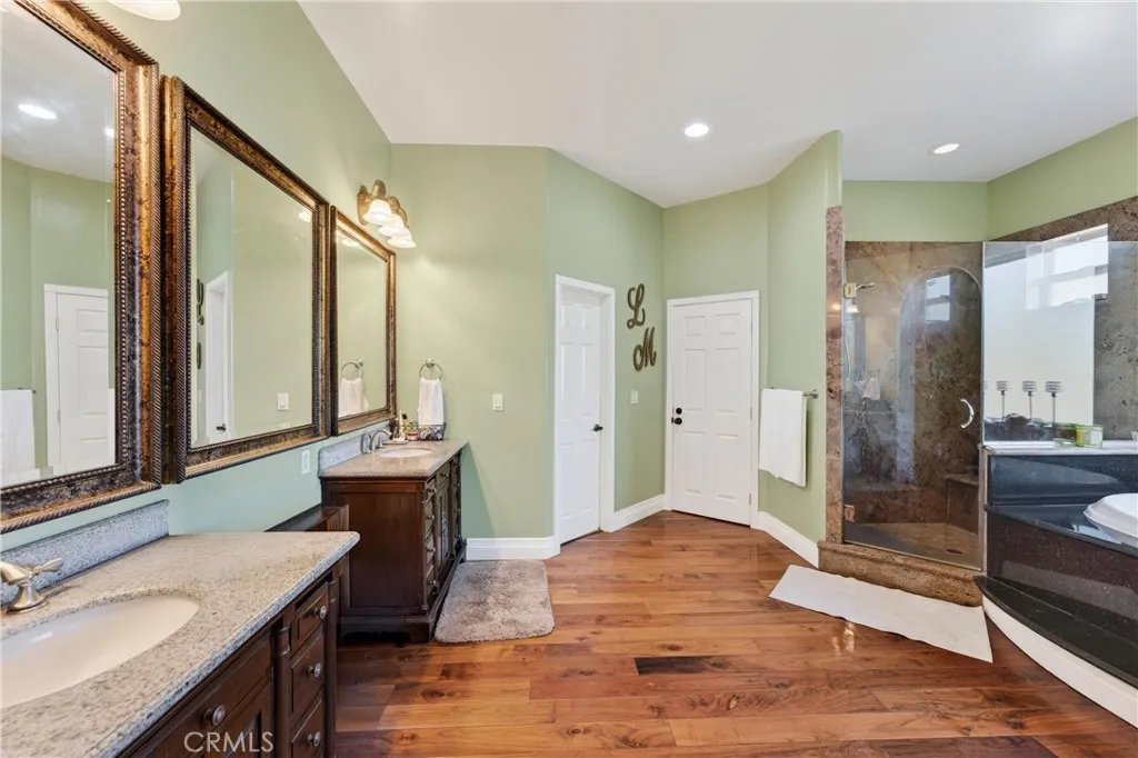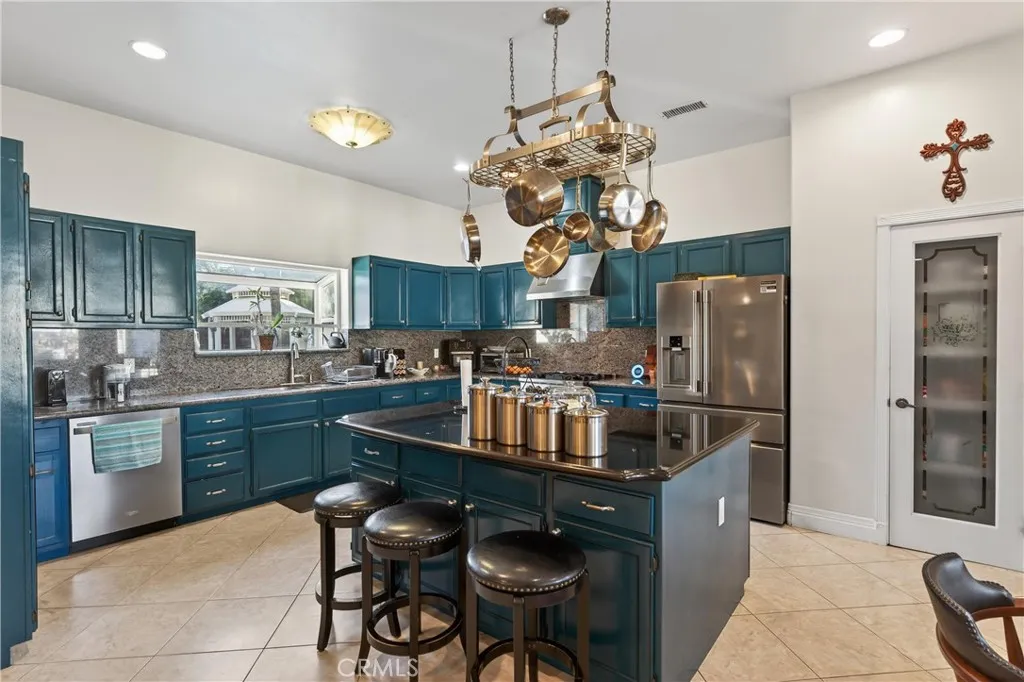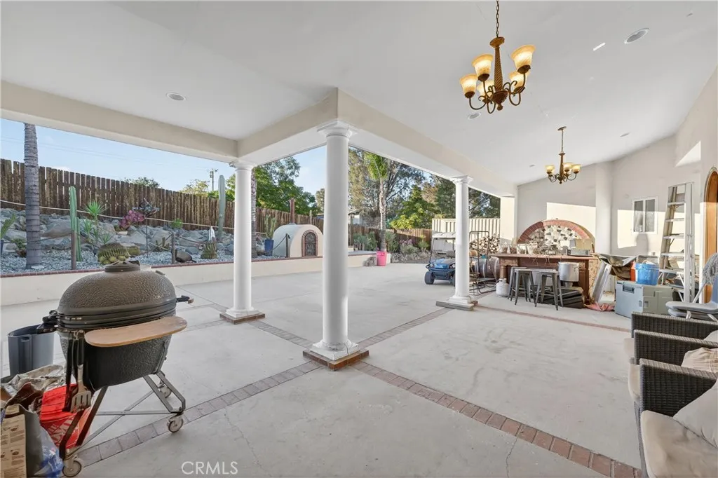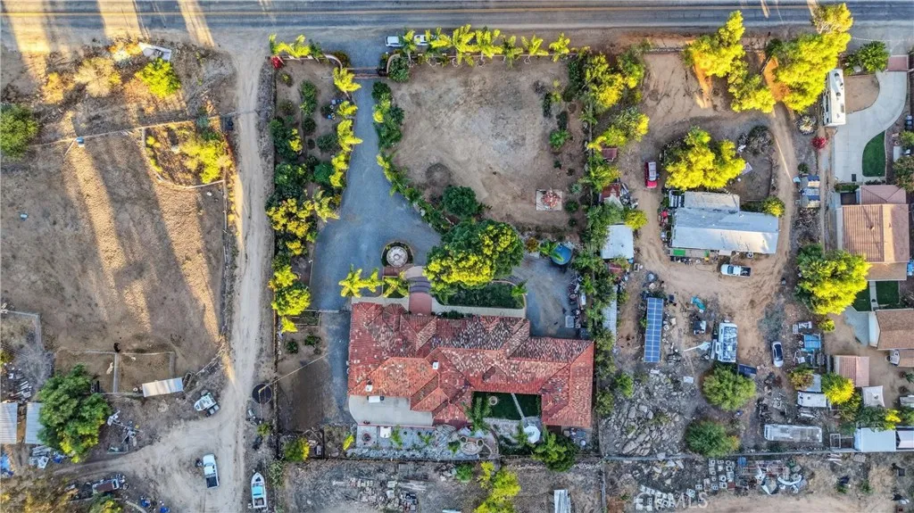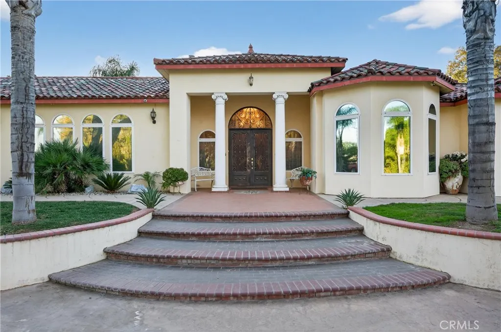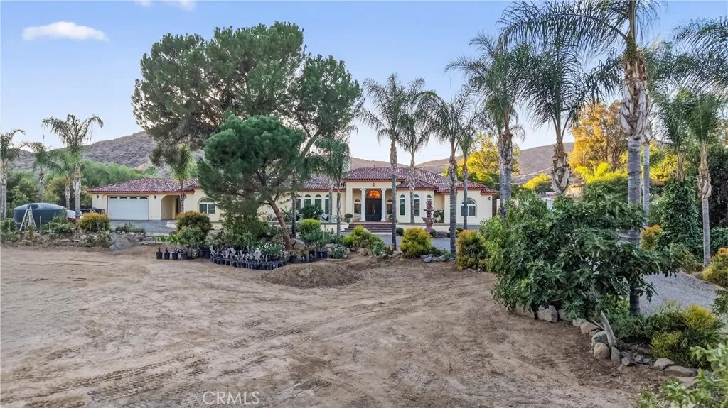 Welcome home to this beautiful ranch-style retreat nestled on 1.15 acres of private, gated land. A custom remote-control iron gate welcomes you into a property surrounded by palm trees, fruit trees, and plenty of space to park your RV, trailer, and all your desert toys. Step inside through elegant double doors and be greeted by high ceilings, recessed lighting, and dazzling chandeliers. The open floor plan seamlessly connects the spacious living areas, perfect for entertaining and family gatherings. The chefs kitchen features a large center island, granite countertops, and ample cabinet spaceideal for both casual meals and hosting. This expansive home offers 5 bedrooms and 5 bathrooms, including a grand master suite with a spa-inspired bathroom featuring a custom walk-in shower, separate soaking tub, and an oversized walk-in closet with custom-built shelving and cabinets. Enjoy your favorite films in the dedicated theatre room, or use the large bonus room as a 6th bedroom , an office, or gym -whatever fits your lifestyle. A beautiful arched breezeway offers a relaxing transition between indoor and outdoor living while allowing natural airflow throughout the home. Step outside and relax in your very own backyard paradise. Stroll through the rose garden, unwind under the gazebo overlooking a serene waterfall fountain, or host unforgettable gatherings on the covered patio with recessed lighting and chandeliers. The custom outdoor pizza oven and fire pit area provide the perfect setting for cozy nights under the stars. Adding to the homes impressive features, the property is eq