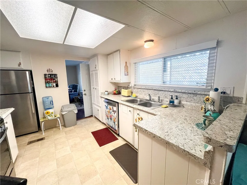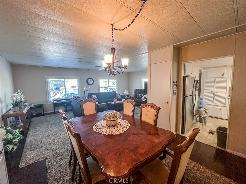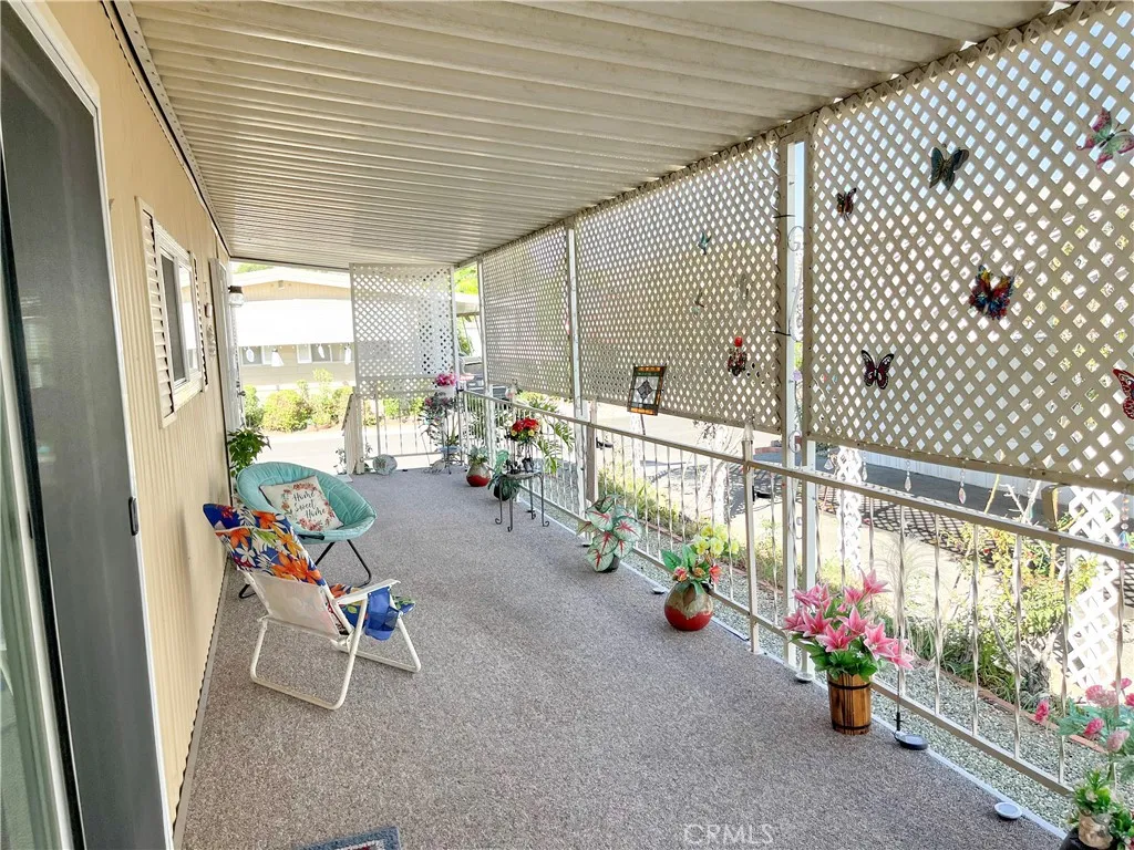 Welcome to Riverside Meadows A Premier 55+ Community in Riverside! This well-maintained and inviting home offers 2 spacious bedrooms and 2 bathrooms, perfect for comfortable living in one of the area's most sought-after senior communities. Step onto the large covered front porch, perfect for relaxing or entertaining. Inside, youre greeted by a bright and airy living room with expansive windows that fill the space with natural light. The living area flows seamlessly into the dining room, which features a built-in china cabinet with ample shelving and storage, and space for a full-size dining table that seats six. The kitchen is well-appointed with stainless steel appliances, including a refrigerator, dishwasher, built-in microwave, and oven/range. Just off the kitchen, youll find an open bonus spaceideal for a family room, home office, study, or even a second dining area. Both bedrooms are generously sized and offer adjoining bathrooms, providing convenience and privacy. Additional highlights include: Dedicated laundry room with full-size washer and dryer, Double-pane windows with 2 blinds for energy efficiency and privacy. a mix of carpet and flooring throughout, ceiling fans for added comfort, water heater, A/C, and furnace. Dont miss the opportunity to live in a beautifully kept home in the heart of Riverside Meadowswhere comfort, community, and convenience come together. Riverside Meadows is close to the 91 freeway, across the street there is a doggy park, down Magnolia is Tyler Mall, Kaiser Permanente, and more stores and restaurants.