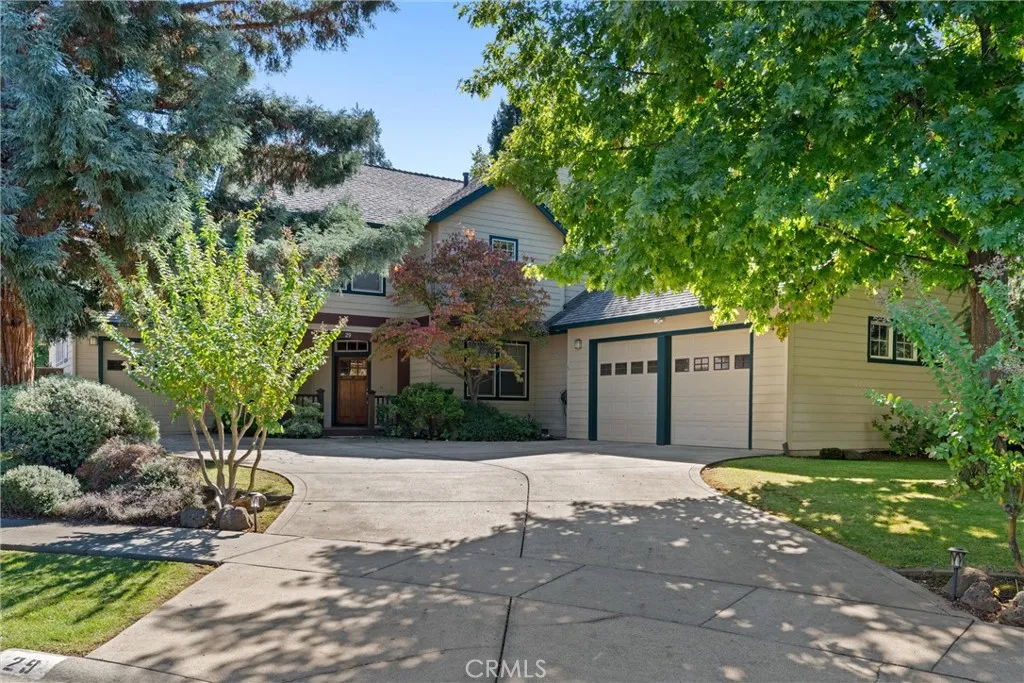 This charming 3-bedroom, 3.5 bath home perfectly blends comfort, convenience, and sustainability. Nestled on a quiet cul-de-sac just steps from Bidwell Park, a local coffee shop, and shopping, this home offers the ideal balance of tranquility and accessibility. Tall redwood trees in the spacious backyard offer plenty of privacy to relax by the pool. This home features a few separate living spaces for all your needs, including a living/family room, a cozy den, and an office. A half bathroom off of the exterior of the home provides convenience for guests while using the pool. Home has beautiful hardwood floors, a spacious kitchen island, soaring living room ceilings, stone fireplace, and owned solar. Don't miss the rare opportunity to own a beautifully maintained home in this sought after neighborhood!