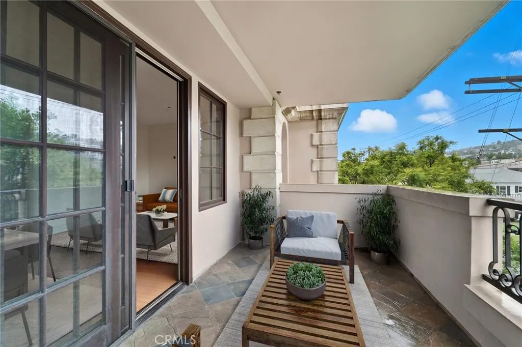 This 1,680 SF 2-bed, 2-bath condo offers an expansive open layout with ideal separation between bedrooms, including a generous primary suite with walk-in closet and large en-suite bath. The bright living area flows seamlessly to the dining and den spaces, creating a perfect setup for both relaxing and entertaining. Additional features include in-unit laundry hookups for a stacked washer/dryer, a private balcony, two parking spaces, and secure entry. Located on one of the most desirable streets just south of the Sunset Strip, with walkable access to Melrose Place, top restaurants, boutiques, fitness studios, and more. To help visualize this homes floor plan and to highlight its potential, virtual furnishings may have been added to photos found in this listing.