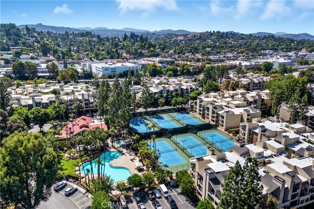 Step into this inviting, sun-drenched corner condo at The Met Warner Centeravailable for the first time in over a decade! Nestled in one of the communitys most desirable and peaceful buildings, this second-floor residence offers privacy, comfort, and resort-style amenities in a prime Woodland Hills location. The spacious, light-filled layout features a cozy fireplace and a private balcony overlooking the tranquil courtyardperfect for relaxing mornings or quiet evenings. Upgrades include fresh interior paint, recessed lighting, stylish West Elm curtain rods, stainless steel farmhouse sink, garbage disposal, microwave, brand-new water heater, Nest thermostat, updated door handles, new carpet, and newly painted balcony flooring. Central air and heat ensure year-round comfort. The unit includes two tandem parking spaces and access to community laundry. Enjoy resort-style living with four pools and spas, six tennis courts, indoor basketball and racquetball courts, fitness center, sauna, lush landscaping, 24-hour security, on-site management, and responsive maintenance. Ideally located near Trader Joes, Whole Foods, The Village, Westfield Topanga, Ralphs, Sprouts, Target, Costco, and countless restaurants, gyms, and cafes. Warner Center Parkwith concerts, fireworks, and community eventsis just steps away. Easy access to the 101 freeway and nearby nee developments like the Rams practice field add to this areas growing appeal. Lovingly cared for since 2014, this bright corner retreat offers a rare blend of style, convenience, and comfort in one of the Valleys most desirable gated c