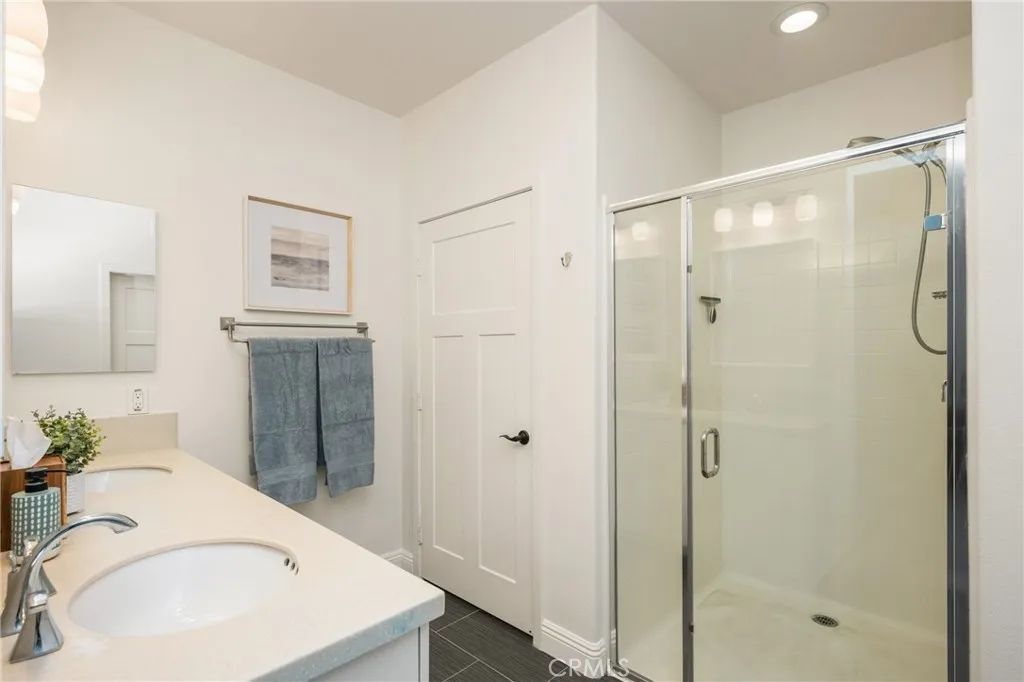 Anaheim Packing House area delight! Experience city living at it's best in this stunning 2 bedroom, 2 bath modern comfort condo complete with city lights views. A beautiful third-floor corner unit-modern and upgraded in single level living. Light and bright living space fill the open concept living areas with natural light, along with a generous kitchen and dining area. The spacious primary suite (large enough for a king size bed) also has dual sink vanity and an oversized walk-in closet. The spacious second bedroom also has walk-in closet. The home offers a second bathroom complete with tub, inside laundry and 2 car tandem garage. Wood Shutters throughout, New A/C Condenser-complete with a google nest thermostat. The HOA offers amazing amenities for entertainment such as 2 rooftop terraces, outdoor fireplaces, Fire pit, BBQ areas and sparkling pools. Located in the heart of downtown Anaheim, minutes away from Disneyland, Center Street Promenade and walking distance to the Anaheim Packing District's top restaurants and entertainment. Easy access to 57,5,55,91 and 22 freeways all in the heart of Orange County. Urban Luxury meets Anaheim Excitement!